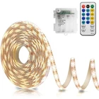 echosari New Strip Lights: 150 pieces high brightness 2835 LEDs, the light strip with a length of 16.5ft can meet most decoration requirements, 2700K warm white can create the best comfortable atmosphere Durable & Long Lasting: Newly designed battery light strip, strong brightness (you can use the remote control to adjust the brightness) and low power consumption. Please use high-quality batteries correctly to prolong the life of the lights Battery Operated: The led strip lights with battery box is portable and flexible. The LED strip lights are battery powered by 4 PCS AA batteries (batteries not included). Cuttable: The cuttable design allows you to adjust the length of the light strip along the scissors line according to your preference, the part of the light strip away from the battery box will be useless after cutting Sturdy Self-Adhesive Tape: The light strip is easy to install as you just need to expose the adhesive backing and stick the light strip to a clean surface Widely Application:Perfect ambience light bar for decorating bedrooms, kitchens, stairs, cabinets, wardrobes, walkways, closets, shelves and more
