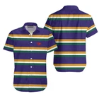 Stripe Lines Crawfish Purple Ground Stripe Mardi Gras Rugby Blue Hawaiian Shirts