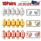 Specification: Material: Copper Color: Silver,Gold,Rose Gold Size(approx): 12x6mm Feature: Long Term Use: The bracelet clasp is firm and strong, sturdy and stable in construction, not easy to break, deform, bend or rust. Appropriate for many jewelries:The magnetic clasp extender is suitable for most of your necklaces, bracelets and other jewelry. Easy to Use: the bracelet extender clasp has magnetic force, so you do not need to use other tools. Package Included: 10Pairs(20PCS) Magnetic Clasps Note: Due to the different color calibration of each display, the product may have a little color difference.