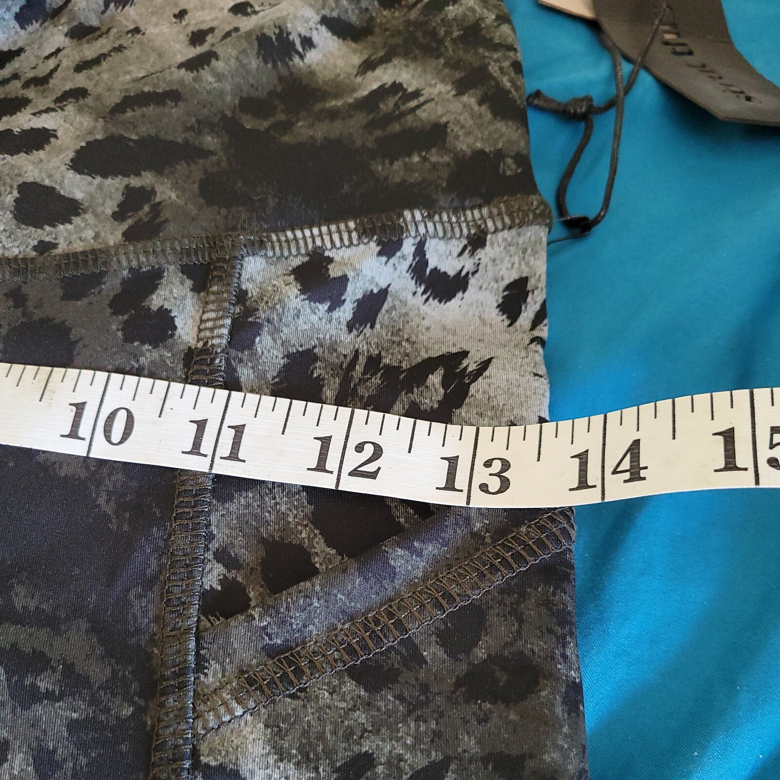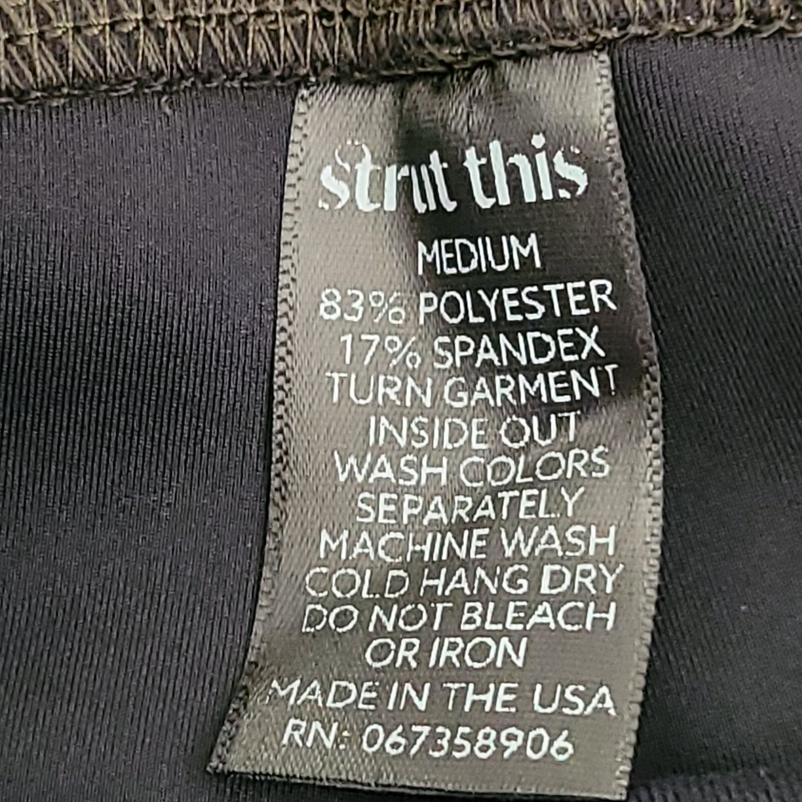 Material:Polyestergtin13:Does not applyBrand:Strut ThisSize Type:RegularStyle:Casual PantsVintage:NoDepartment:WomenMPN:Does Not ApplyUPC:Does not applyWaist:12" across topOccasion:CasualLeg Style:SkinnyLeg Type:Skinny LegSize:MFabric Type:83% polyester 17% spandexType:PantsClosure:Pull OnTheme:ColorfulColor:black and greenSeason:Fall, Spring, WinterInseam:27"Pattern:Animal PrintHips:14" across