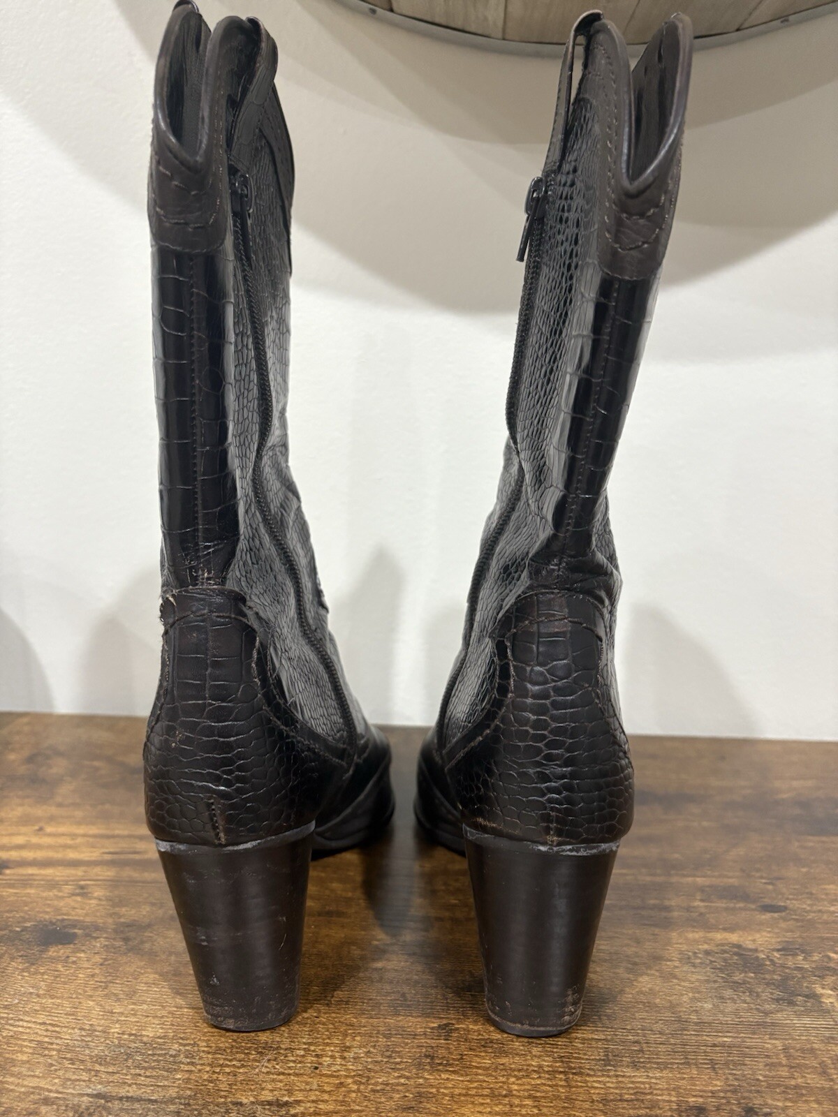 Used and worn in these are still beautiful. The left back heel needs minor restitching. Zippers work perfect.
