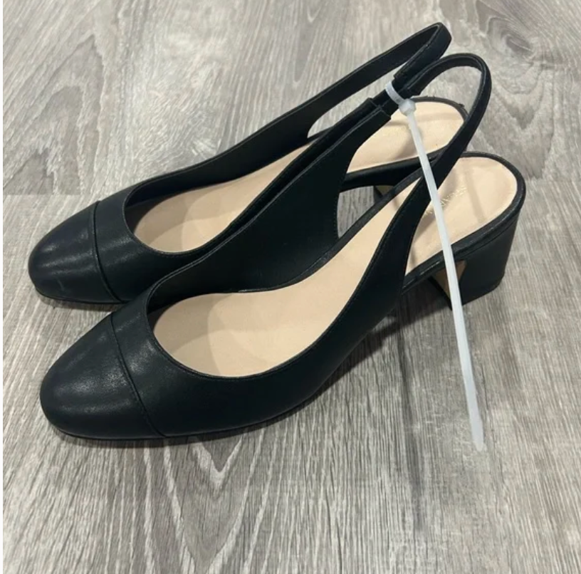 Excellent condition, only tried on Very small scratch on the leather on heel part pictured Size 8 Pumps Leather Almond toe Block heel Elasticated slingback strap Synthetic sole please only offers smoke and pet free home fast shipping!