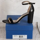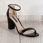 The Stuart Weitzman Nearlynude Ankle Strap City Sandal in Black Dress Nappa is a stylish and sophisticated choice for parties or cocktails. This high heel sandal features an open toe design with a buckle closure, adjustable ankle strap, and strappy style. Made from leather and crafted in Spain, this shoe exudes a city theme with a solid black color that is perfect for the summer, fall, or spring seasons. The block heel adds both height and stability, making it a versatile and chic option for any wardrobe.
