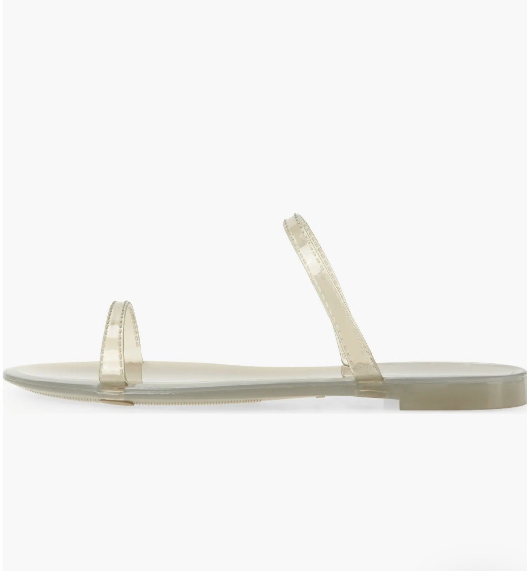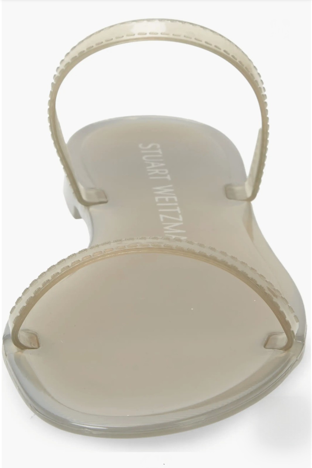 The Stuart Weitzman Sawyer Slide Sandal in size 8 is a stylish and comfortable slip-on sandal perfect for casual occasions in the summer and spring seasons. The beige color and flat heel make it versatile for everyday wear, while the synthetic upper material ensures durability. With a solid pattern and classic slide style, this sandal from the renowned brand Stuart Weitzman is a timeless addition to any woman's shoe collection. This sleek slide sandal has two slender straps to frame your foot in contemporary style. Water-resistant Synthetic upper, lining and sole