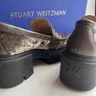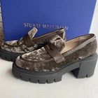 The Stuart Weitzman Soho Loafer in Truffle colored Crushed Velvet is a luxurious and stylish shoe designed for women in size US 6B/EU 36.5. Made with Leather Trimmed Crushed Velvet and featuring a slip-on closure, these loafers offer a comfortable and elegant option for everyday wear. The round toe shape and velvet fabric add a touch of sophistication, while the brand's reputation for quality craftsmanship ensures longevity and timeless style. Made in Spain, these loafers are a perfect choice for those seeking a versatile and chic addition to their shoe collection. **Includes all original packaging, and though technically used they show VERY little signs of wear—Please see photos for details. Finding gently worn gems with all original packing, in such pristine condition, is so incredibly rare**