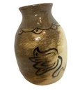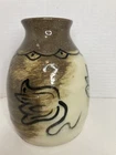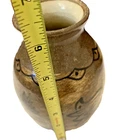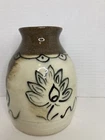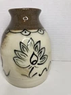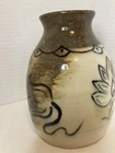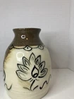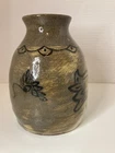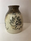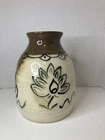 This beautiful vase is a unique, handmade piece of art pottery. It features a lovely floral design that is sure to add a touch of elegance to any room. The vase stands at 6 1/2 inches tall and is signed by the artist. Made of high-quality clay, this vase is perfect for displaying flowers or as a decorative piece on its own. The brown color and hand-painted features give it a one-of-a-kind look. This vase is perfect for those who appreciate the arts and crafts style and mission style of pottery. Signed by Lee Aine