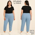 Studio By Torrid Women's Blue Taper Pants Pull On Relaxed Size 1R Size: 1R Color: Blue Material: Polyester Condition: New With Tags. Approximate Measurements: Waist: 16.5 in Hips: 23.5 in Inseam: 27.5 in Rise: 11 in Length: 38 in Leg Opening: 7 in