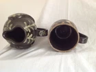 This is a lovely handmade Studio Pottery jug and cup set made to look like an owl when stacked together with the cup handle forming the beak. The set has a dark brown background glaze and a slipware like pattern applied in speckled shades of brown, the body seems to be a form of stoneware so is hardwearing. This was commissioned by my mother and was designed to sit on a bedside table for pouring water during the night. The jug measures 5" (13cm) high, the cup is 3" (8cm) high and the total combined height is 6.5" (16.5cm). The set is not marked and is in very good condition with no chips, cracks or crazing and is a lovely fun item.