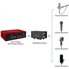 SPECIFICATIONS Brand Name : SNQP Hign-concerned Chemical : None Origin : Mainland China Private Mold : Yes Products Status : Stock Type : External Interface Type : usb Channels : 2 Brand Name : Neutral Design Model Number : AR007AA021kit Place of Origin : Guangdong, China Supported max. sample rates : 192KHz 24Bit Dynamic Range : 95 dB (A-weighted) Frequency Response : 20 Hz to 20 kHz ±1 dB THD+N : <0.01% (1kHz@0dBu) Microphone In Noise EIN : -110dBu (A-weighted) Gain + : +22dB Microphone Type : Dynamic/ Passive/ Ribbon Microphone diaphragm size : 26mm Application : Podcasting Boardcast Keywords : Professional Recording Sound Card 48V Condenser Studio Professional Bundle USB Audio Interface Sound Card with Gain Bosster Kit Podcast Recording Full Set You can use this product to record high-quality audio on your computer. Not only record the human voice through the microphone input port; also can record the instrument sound of an electric guitar or bass through the instrument input port of the ¼-inch (6.35 mm) jack; at the same time, you can connect the physical output to the speaker, active monitors, headphones or any other audio equipment for real-time monitoring. * Supported sample rate up to 24Bit/192KHz * 2 independent 48V phantom power control switches with 2 inputs for more convenient operation. * LED indicates for the input audio, CLIP LED indicates that the audio signal in the channel is too loud. * Equipped to turn off monitor and mono/stereo switch monitor button, more user-friendly functional design. * Audio Stream Input Output (ASIO) support. Dynamic Mic Activator Microphone Pre amp Booster Gain Microphone Amplifier for Passive Ribbons Microphones Product Description: It is a compact, single-input solution for common audio problems in the field and in the studio involving low-output passive microphones, including ribbons. The AA021 uses any standard phantom-powered mixer or microphone input device to provide up to +22dB of clean, transparent gain. This improves signal-to-noise ratio and improves the performance of passive microphone signals by driving stronger, cleaner signals over longer XLR cable runs, making them ideal for broadcast, live, and studio applications. It is housed in a rugged steel enclosure which offers shielding and durability. Additionally, it has provisions for stage or stand mounting. Transparent Gain Gives passive mics up to +22 dB additional active output and keeps the direct audio path free-and- clear of transformers, capacitors, and resistors. Useful for a Variety of Applications Use with low-output dynamic microphones and ribbons o Use with mixers/preamps that negatively impact the sound at higher gain setting o Use for long cable runs o Mic softer sound sources such as acoustic instruments and voice o Use with noisy or low-gain preamps Features at a Glance Easy to use self-contained design requires only +48V phantom power o Provides 2 distinct stages of clean gain o Safe for all passive ribbons with no transfer of phantom o Recommended for use with all passive dynamic microphones o Rugged, road ready, and portable, for studio, stage, and broadcasting o Compatible with tube, battery, or power supply driven microphones Spec.\IO Microphone Input Line Input Instrument Input Line Outputs Headphone Output Sampling Rates: 44.1kHz, 48kHz, 96kHz and 192KHz Frequency Response: 20Hz to 20KHz ±1 dB Dynamic Range: 95 dB (A-weighted) 95 dB (A-weighted) 95dB (A-weighted) 95 dB (A-weighted) 90 dB (A-weighted) THD+N: <0.01% (1kHz@0dBu) <0.01% (1kHz@0dBu) <0.03%(1kHz@0dBu) <0.01% <0.01% Maximum Input Level: +8 dBu at Minimum Gain +19 dBu at Minimum Gain +11 dBu at Minimum Gain +15.5 dBu balanced outputs +10 dBu Gain Range: 50 dB 50 dB 45 dB / / Impedance 3K ohms 20K ohms 1M ohms 221 ohms 30-300 ohms