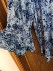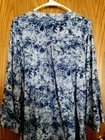 The Studio Works woman blue paisley blouse in size 2X features flared sleeves and a V-neckline for a stylish and comfortable look. Made of polyester, this pullover blouse is machine washable for easy care. Perfect for the summer, fall, and spring seasons, this relaxed fit tunic is accented with buttons and is a versatile addition to any woman's wardrobe. Arm pit to arm pit measures 25.25 inches