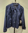 Studio Works women's jacket in navy blue, button closure buttons on sleeve, pockets, shoulders and back. Machine washable and is available in size 2X. Ships from a smoke free home! Please see all photos for exact item condition. Thank you for checking out my store! All items are shipped within 1 or 2 business days. Make a bundle to save on shipping cost. Wash to Wear