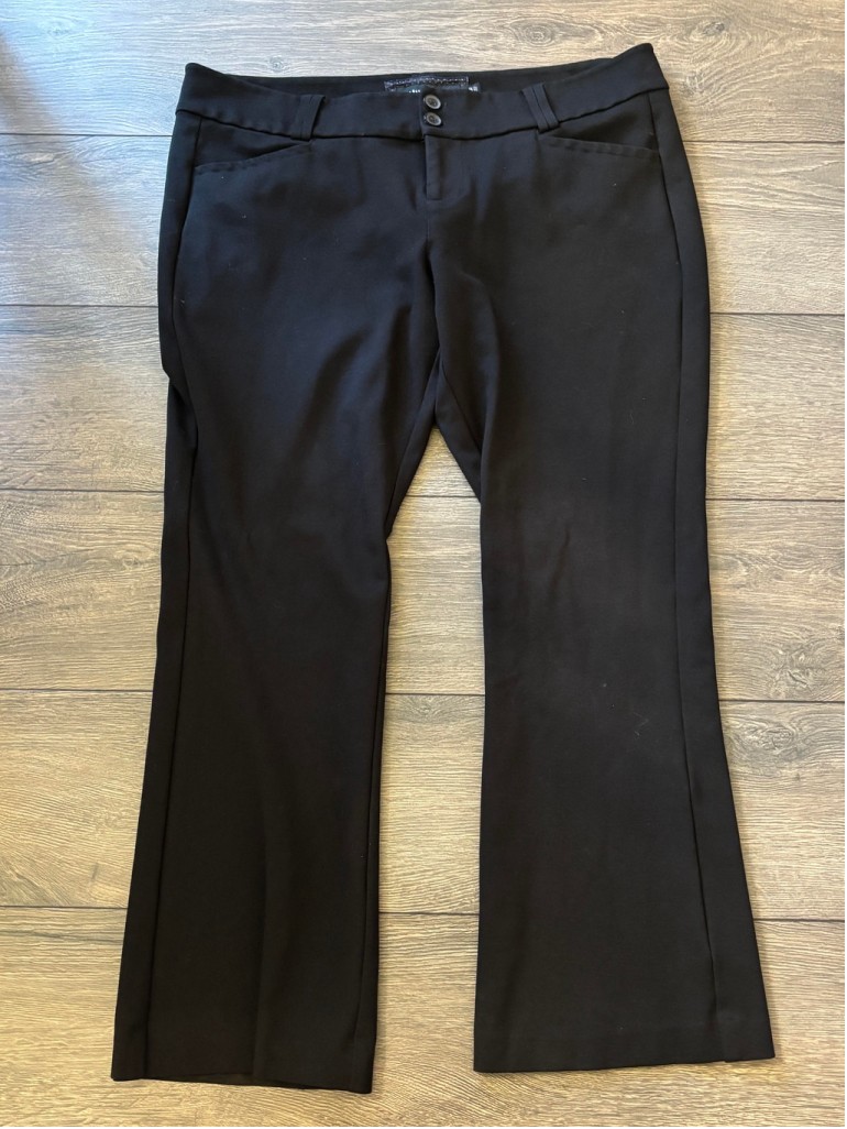 These Studio by Torrid black dress pants combine comfort and polish with a bootcut silhouette. Made with a soft stretch blend, they feature a mid-rise fit, belt loops, and front and back pockets for a versatile office-to-evening look. ● Brand: Studio by Torrid ● Size: 18R (Regular) ● Color: Black ● Material: 68% Rayon, 28% Nylon, 4% Spandex ● Condition: Good Used Condition Key Features: ● Bootcut design flatters and elongates the legs ● Stretch blend fabric for all-day comfort ● Double button and zip closure ● Belt loops for styling with accessories ● Sleek black finish suitable for work or casual wear Pair these dress pants with a blazer and heels for a professional outfit or style with a blouse and flats for everyday wear. A reliable Torrid staple that blends comfort and timeless style. Ships Fast! #TorridStyle #PlusSizeFashion #BootcutPants #OfficeWear #WardrobeStaple