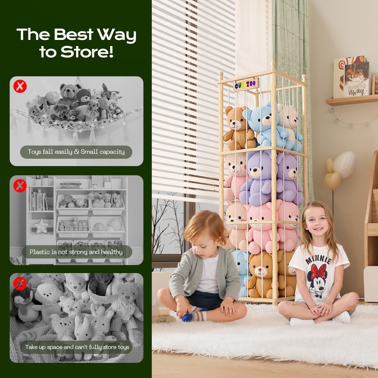 Product Description Stuffed Animal Storage Organizer Wood Animals Zoo Toy Holder Plush Toy Storage Stuffed Animal Storage Zoo Wooden Holder Organizer Toy with Elastic Cords Room Safe and Durable: The stuffed animal zoo is made of sturdy and durable pine wood and screws. The shelf is equipped with elastic ropes and bottom non-slip pads. The rounded edges and non-slip tape provide protection when children are playing. After assembly, it fits tightly and has high strength. It will not deform even after long-term use, and it is very sturdy and durable. Keep your Room Tidy: Toy organizer is perfect for storing plush toys, blankets, pillows and more. It not only makes it convenient for growing children to access toys independently, but the natural wood finish also complements the aesthetic of any room. It can instantly free up valuable floor space in the bedroom, playroom or nursery, making full use of space and reducing clutter. Gift for Kids: Stuffed animal storage adopts a vertical design with ample space. It can not only store plush toys, but also elegantly display various toys. The elastic rope design makes the storage and placement of toys more convenient, allowing children to easily access them, while cultivating their independence and developing good storage habits. Therefore, this zoo plush animal storage box is a perfect gift for children. Ample Storage Space: When assembled, this stuffed animal organizer measures 15.75 x 15.75 x 53.15 inches, which can hold approximately 40 or more small plush toys, and is also perfect for storing large plush toys individually, providing ample space for toys of various sizes. Easy to Installation: No tools required! Simply use the included brackets and bungee cords to fasten it to a wooden post to quickly build and organize your toy storage solution. Mix and match units for multiple layers of storage. Comes with clear installation instructions, if you have any issues during installation, please contact us through Amazon and we will do our best to help you resolve the issue. package include : pine wood and screws , elastic ropes, About Us Payment Shipping Terms Contact Us We specialize in the research, development and manufacturing of electronics, mobile phone accessories, tablet accessories, cosmetic cases, household items, TV mounts, etc. We only accept payment via PayPal.If you do not have a PayPal account, please follow these steps: Sign up for free using your email address and a password. Link your bank accounts or credit cards to your PayPal account. Use the PayPal button when shopping online to pay simply, quickly, securely and conveniently. Packages are shipped from our warehouse, which is located in California, United States. Individual items will be shipped within 1-2 business days upon receipt of payment. Normally, delivery takes 2-3 days. All items are shipped to the buyer's eBay address. Before you make payment, please ensure that your address on eBay is the one you want us to ship to. Delivery time depends on the destination and other factors, and may take up to 15 business days. We offer a 100% satisfaction guarantee. If you are not 100% satisfied with your purchase, please send us a message within 3 days of receiving the item and let us know your issue. We will help you resolve the problem as quickly as possible. Please contact us (via eBay Message) before initiating a return or filing a claim. Any return without approval will not be accepted. You may return the item for a refund or exchange within 30 days of receiving the shipment. Before returning the item, please contact our customer service to request the return address. Our goal is to ensure you experience the best customer service. We also welcome your product suggestions. Your positive feedback is very valuable to us. Thank you for your support. If you have any questions or problems at any time, please contact us immediately via eBay Message or email. We will get in touch with you promptly to address your questions or problems. Typically, we can respond to your message within 24 hours. Our working hours are (UTC+8) 9:00 AM - 6:00 PM (Monday to Friday). About Us We specialize in the research, development and manufacturing of electronics, mobile phone accessories, tablet accessories, cosmetic cases, household items, TV mounts, etc. Payment We only accept payment via PayPal.If you do not have a PayPal account, please follow these steps: Sign up for free using your email address and a password. Link your bank accounts or credit cards to your PayPal account. Use the PayPal button when shopping online to pay simply, quickly, securely and conveniently. Shipping Packages are shipped from our warehouse, which is located in California, United States. Individual items will be shipped within 1-2 business days upon receipt of payment. Normally, delivery takes 2-3 days. All items are shipped to the buyer's eBay address. Before you make payment, please ensure that your address on eBay is the one you want us to ship to. Delivery time depends on the destination and other factors, and may take up to 15 business days. Terms We offer a 100% satisfaction guarantee. If you are not 100% satisfied with your purchase, please send us a message within 3 days of receiving the item and let us know your issue. We will help you resolve the problem as quickly as possible. Please contact us (via eBay Message) before initiating a return or filing a claim. Any return without approval will not be accepted. You may return the item for a refund or exchange within 30 days of receiving the shipment. Before returning the item, please contact our customer service to request the return address. Contact Us Our goal is to ensure you experience the best customer service. We also welcome your product suggestions. Your positive feedback is very valuable to us. Thank you for your support. If you have any questions or problems at any time, please contact us immediately via eBay Message or email. We will get in touch with you p