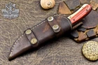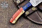 Custom Hand Made DAMASCUS STEEL HUNTING KNIFE WITH USA FLAG HANDLE We offer a shipping discount for More then one purchased . And discount will be apply on combine invoice, Discount will not apply on separate payment. ITEM DETAILS OVER ALL LENGTH 8.0 inches long (Approx) HANDLE LENGTH 4.0 inches long (Approx) BLADE LENGTH 4.0 inches long (Approx) BLADE HARDNESS 58-60 HRC Which Holds The Sharp Edge For Long Time. HANDLE WOOD AND BONE COVER LEATHER SHEATH This Awesome custom made KNIFE has a nice hand forged with the combination of 4340 & 1080 steel. HOW OUR DAMASCUS IS MADE: All our Damascus is real and not just an acid etch. Damascus is a mixture of 1080HC and 4340 nickel carbon. You heat them up together and then fold the bar over and over to get the desired layers, ours are 396 layers. Then you burn the blade in acid, and it turns the nickel satin color and the high carbon turns blackish gray. This is how the layers are exposed to show the layers of the new steel created coined "Damascus". All Damascus is acid etched to show the layers. If you high polish the metal it will be shinny satin like all steels. Only after you burn the sides of the blade with acid do you see the layers of the two steels. Makes sense? After we make our knives we high polish the handles and put an edge on the blade. The high polishing buffs off the acid burned layer of the handle, and the blade edge is sharpened and the acid burned edge becomes satin. You can re-burn the tang of the blade near the handles and the edge of the blade and it will show the layers once more. All our knives are hand made, durable and unique ***** YOU WILL RECEIVED THE SAME KNIFE Qality Standards Our Damascus blades are made from high quality non-stainless steels which rival or exceed any Damascus blade made from the 10 series with 4340. Our Damascus combination has taken years to perfect and has been tested under a variety of application which will offer professional performance in categories of toughness, strength (lateral stress) and edge honing and holding ability. In a 5 spot Rockwell test our blades will average near or close to 58 which offers a perfect balances between its toughness and strength.Our blades due to carbon content need to be regularly treated with wax and/or 3 in 1 oil to maintain its superior quality. Questions if you have any question feel free to send us message we aim to answer all questions within 24 hours Feedback If you are not satisfied with our service please contact us before leaving any negative or natural feedback. We will resolve all issues as quickly as possible. Disclaimer We are not responsible for any injuries associated with the use of our tools. Our products are intended for legal use only by responsible buyers. Therefore, we will not sell our products to anyone under the age of 18. Before bidding please check your country laws as some countries Custom don't allow this. If your purchase is held by Custom Authorities in your country/State we will not be responsible for that and no refund will be issued Shipping We offer a 20% shipping discount for More then one purchased . And discount will be apply on combine invoice, Discount will not apply on separate payment We ship within 24 hours after receiving complete payment but this can be delayed due to week ends or Governments and Religious Festivals . . This is beyond our control and we apologize for this inconvenience. Precautions Our Tools are very sharp so open and use them very carefully We are not responsible for any injuries associated with the use of our tools Tips to Care knife 1. NEVER STORE YOUR KNIFE FOR LONG TIME IN LEATHER SHEATH. 2. LEATHER CAN ABSORB WATER, WHICH WILL RUST THE KNIFE. 3. ALWAYS CLEAN THE BLADE AFTER USING WITH OIL OR WAX