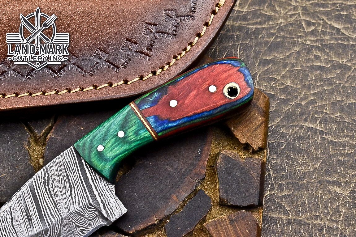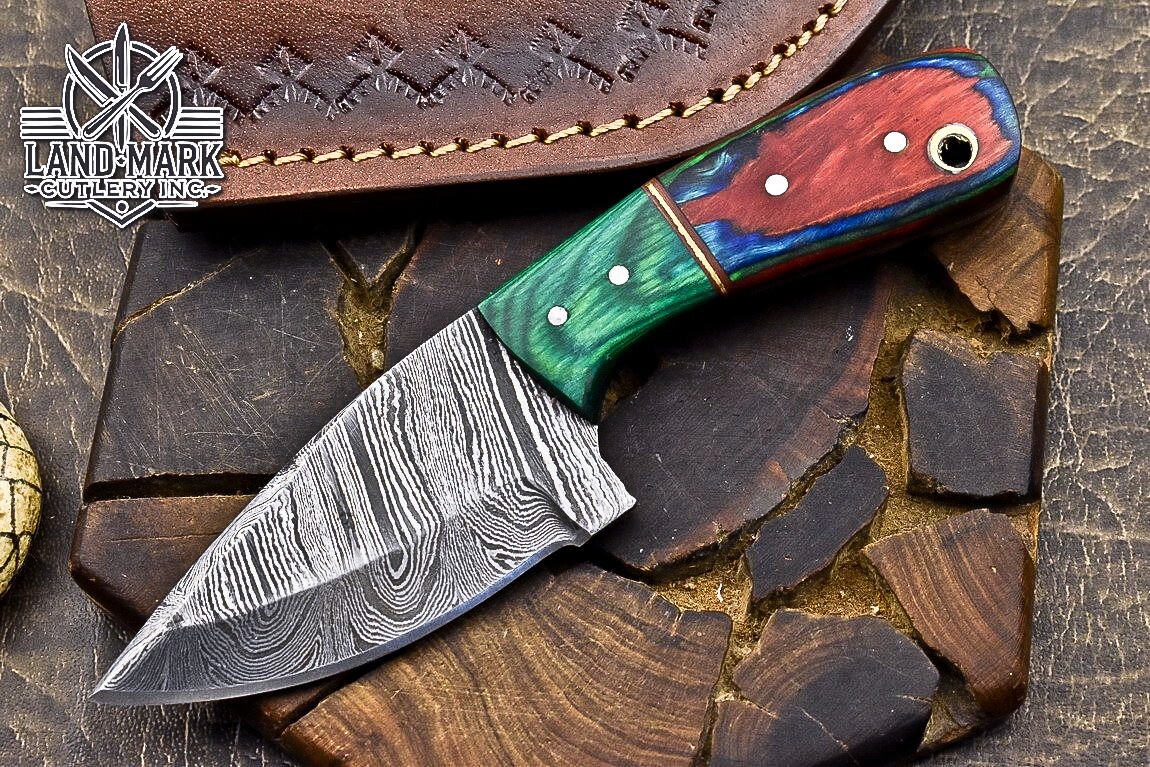 Custom Hand Made DAMASCUS STEEL HUNTING KNIFE WITH PAKKA WOOD HANDLE We offer a shipping discount for More then one purchased . And discount will be apply on combine invoice, Discount will not apply on separate payment. ITEM DETAILS OVER ALL LENGTH 3.0 inches long (Approx) HANDLE LENGTH 1.5 inches long (Approx) BLADE LENGTH 1.5 inches long (Approx) BLADE HARDNESS 58-60 HRC Which Holds The Sharp Edge For Long Time. HANDLE PAKKA WOOD COVER LEATHER SHEATH This Awesome custom made KNIFE has a nice hand forged with the combination of 4340 & 1080 steel. HOW OUR DAMASCUS IS MADE: All our Damascus is real and not just an acid etch. Damascus is a mixture of 1080HC and 4340 nickel carbon. You heat them up together and then fold the bar over and over to get the desired layers, ours are 396 layers. Then you burn the blade in acid, and it turns the nickel satin color and the high carbon turns blackish gray. This is how the layers are exposed to show the layers of the new steel created coined "Damascus". All Damascus is acid etched to show the layers. If you high polish the metal it will be shinny satin like all steels. Only after you burn the sides of the blade with acid do you see the layers of the two steels. Makes sense? After we make our knives we high polish the handles and put an edge on the blade. The high polishing buffs off the acid burned layer of the handle, and the blade edge is sharpened and the acid burned edge becomes satin. You can re-burn the tang of the blade near the handles and the edge of the blade and it will show the layers once more. All our knives are hand made, durable and unique ***** YOU WILL RECEIVED THE SAME KNIFE Qality Standards Our Damascus blades are made from high quality non-stainless steels which rival or exceed any Damascus blade made from the 10 series with 4340. Our Damascus combination has taken years to perfect and has been tested under a variety of application which will offer professional performance in categories of toughness, strength (lateral stress) and edge honing and holding ability. In a 5 spot Rockwell test our blades will average near or close to 58 which offers a perfect balances between its toughness and strength.Our blades due to carbon content need to be regularly treated with wax and/or 3 in 1 oil to maintain its superior quality. Questions if you have any question feel free to send us message we aim to answer all questions within 24 hours Feedback If you are not satisfied with our service please contact us before leaving any negative or natural feedback. We will resolve all issues as quickly as possible. Disclaimer We are not responsible for any injuries associated with the use of our tools. Our products are intended for legal use only by responsible buyers. Therefore, we will not sell our products to anyone under the age of 18. Before bidding please check your country laws as some countries Custom don't allow this. If your purchase is held by Custom Authorities in your country/State we will not be responsible for that and no refund will be issued Shipping We offer a 20% shipping discount for More then one purchased . And discount will be apply on combine invoice, Discount will not apply on separate payment We ship within 24 hours after receiving complete payment but this can be delayed due to week ends or Governments and Religious Festivals . . This is beyond our control and we apologize for this inconvenience. Precautions Our Tools are very sharp so open and use them very carefully We are not responsible for any injuries associated with the use of our tools Tips to Care knife 1. NEVER STORE YOUR KNIFE FOR LONG TIME IN LEATHER SHEATH. 2. LEATHER CAN ABSORB WATER, WHICH WILL RUST THE KNIFE. 3. ALWAYS CLEAN THE BLADE AFTER USING WITH OIL OR WAX