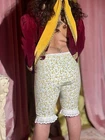 Stunning Floral Bloomer Shorts, Size XS-S ౨ৎ Waist: 16”-28” ౨ৎ Hips: Up to 35” ౨ৎ Length: 20” Charming vintage-inspired bloomer shorts featuring a unique floral pattern and a delicate white lace hem. Designed with an adjustable elastic waistband for a flexible fit. No brand tags, but appear unworn. A perfect statement piece for layering or styling as pettipants. ౨ৎ Model Stats: Bust 33B, Waist 27.5”, Hips 37” vintage yellow frilly pettipants bloomers cottagecore lingerie B3