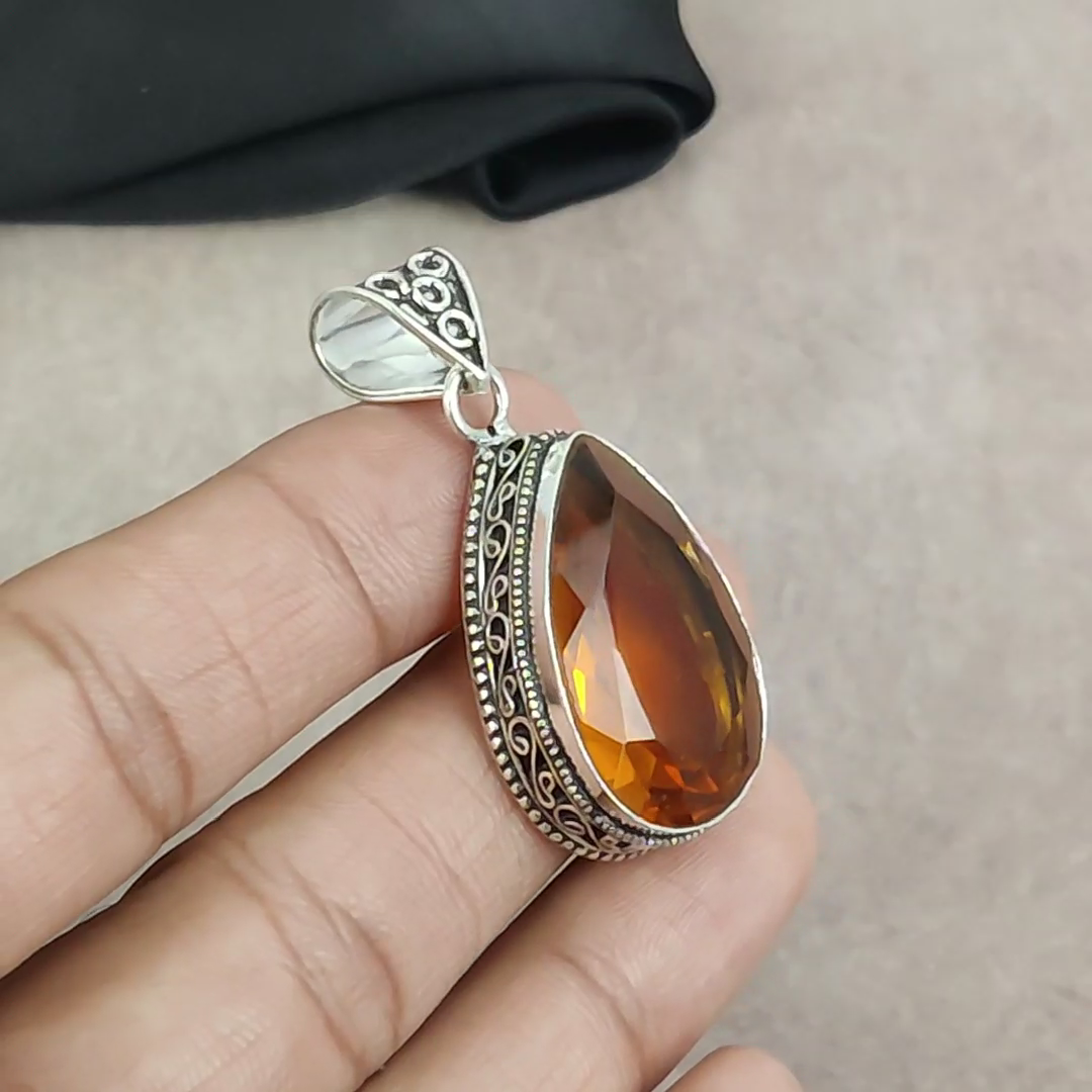 HomeStunning Pear Citrine Gemstone Pendant in 925 Sterling Silver Handmade Jewelry Gift