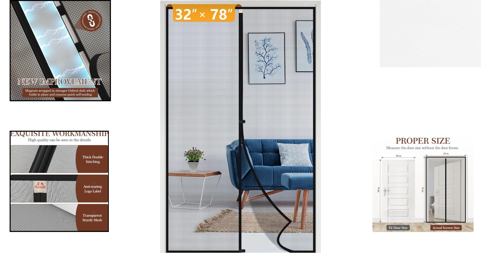 Sturdy Magnetic Screen Door 34"x79" Fits 32"x78" - Easy Installation & Windproof ‹ › ‹ › ‹ › ‹ › ‹ › ‹ › ‹ › ‹ › ‹ › ‹ › Sturdy Magnetic Screen Door Dimensions: 34" x 79" (Fits Door Size 32" x 78") Features: Complete Package: Includes a magnetic screen door, roll of hook&loop, push pins, and instruction manual for easy installation. Upgraded Durability: Wrapped with thickened webbing on all sides, reinforced stitching using six needles per inch, ensuring long-lasting strength. Enhanced Anti-Tearing: Dual-seaming in the top middle and a logo label offering additional support, effectively preventing tearing. Windproof Design: Special hook&loop hasp at the middle and bottom prevents the screen from blowing away in strong winds. Quality Material: Constructed with 18 x 16 mesh material, providing excellent abrasion resistance and color stability, ensuring longevity even in direct sunlight. Benefits: Brings fresh air into your home while effectively keeping pests outside. Perfect for families with children, ensuring safety as kids pass through. Pet-friendly mesh design allows easy access for pets while maintaining a barrier against the elements. Quick and effortless installation process, supported by clear instructions and additional security push pins. Responsive customer service providing replacement accessories and solutions for any issues. Why Choose Our Sturdy Magnetic Screen Door? Transform your living space with our Sturdy Magnetic Screen Door, engineered to provide an inviting entrance while keeping unwanted pests at bay. With its robust design and materials, this screen door guarantees durability and functionality. Enjoy the seamless passage for both yourself and your pets, complemented by a windproof feature and easy installation process. Elevate your home experience today with a screen door that harmonizes beauty and practicality. Don’t wait – embrace the blend of convenience and elegance; order your Sturdy Magnetic Screen Door now! Shipping Free & Fast Shipping - We offer free shipping to most of the USA with a normal delivery time of 3-7 days. However, due to the current situation, additional delivery time (up to 3 weeks) may be required for some items. Alternative Carriers - We may use alternative carriers (e.g. USPS, FedEx, UPS, etc.) to ensure your package arrives safely and on time. Due to the use of multiple carriers, we are unable to provide a tracking number automatically. Handling Time - Orders are processed and shipped within 1-2 business days of receiving cleared payment. Shipping Restrictions - Shipping to Alaska, Hawaii, Puerto Rico, Guam, and other US territories may incur shipping charges or delivery restrictions. Please contact us before ordering, or your order can be refunded/cancelled. State Restrictions - There may be restrictions based on your state of purchase. For example, certain items may not be shipped to California due to state regulations. Contact for Tracking Updates - If you require tracking updates or have any concerns about the delivery of your order, please feel free to contact us, and we will be happy to assist you. Return 30-Day Hassle-Free Returns - We want you to be completely satisfied with your purchase. If you are not, you can return the item within 30 days of receiving it for a full refund or exchange. Easy Return Process - To start a return, simply contact us and we will provide you with a prepaid return shipping label and detailed instructions. Restocking Fee - There are no restocking fees for returns. However, the buyer is responsible for return shipping costs if the return is not due to a seller's error. Refund Processing Time - Refunds will be processed within 5 business days of receiving the returned item in its condition. Payment We accept all major credit cards, PayPal, and Apple Pay for your convenience. Your payment information is secure and encrypted to ensure a safe and seamless transaction. Please complete your payment within 3 days of purchase to avoid any delays in shipping. Feedback Your feedback is extremely important to us. We strive to provide the best products and customer service possible. If you are satisfied with your purchase, please take a moment to leave us a positive review. If you have any concerns or issues with your order, please contact us before leaving negative feedback. We are committed to resolving any problems and ensuring your satisfaction. Contact Us If you have any questions or concerns, please feel free to out to our customer support team. You can contact us through the eBay messaging system. We are available Monday to Friday, 9:00 am to 5:00 pm EST, and we will do our best to respond to your inquiry within 24 hours. Buy it now and enjoy a pleasant shopping experience! Model: Magnetic Screen Door Unit Quantity: 1 Suitable For: Fixed Window,Doorway,Back Door Material: Fiberglass Features: Durable,Easy To Install,Extra Strong Adhesive Strength,Self-Adhesive,Tear Resistant,Pet Friendly Color: Black Item Height: 34 in Item Width: 32 in Item Length: 34 in Type: Magnetic Screen Door Number in Pack: 1 Item Depth: 0.5 in Item Thickness: 0.1 in Item Weight: 1.6 lb