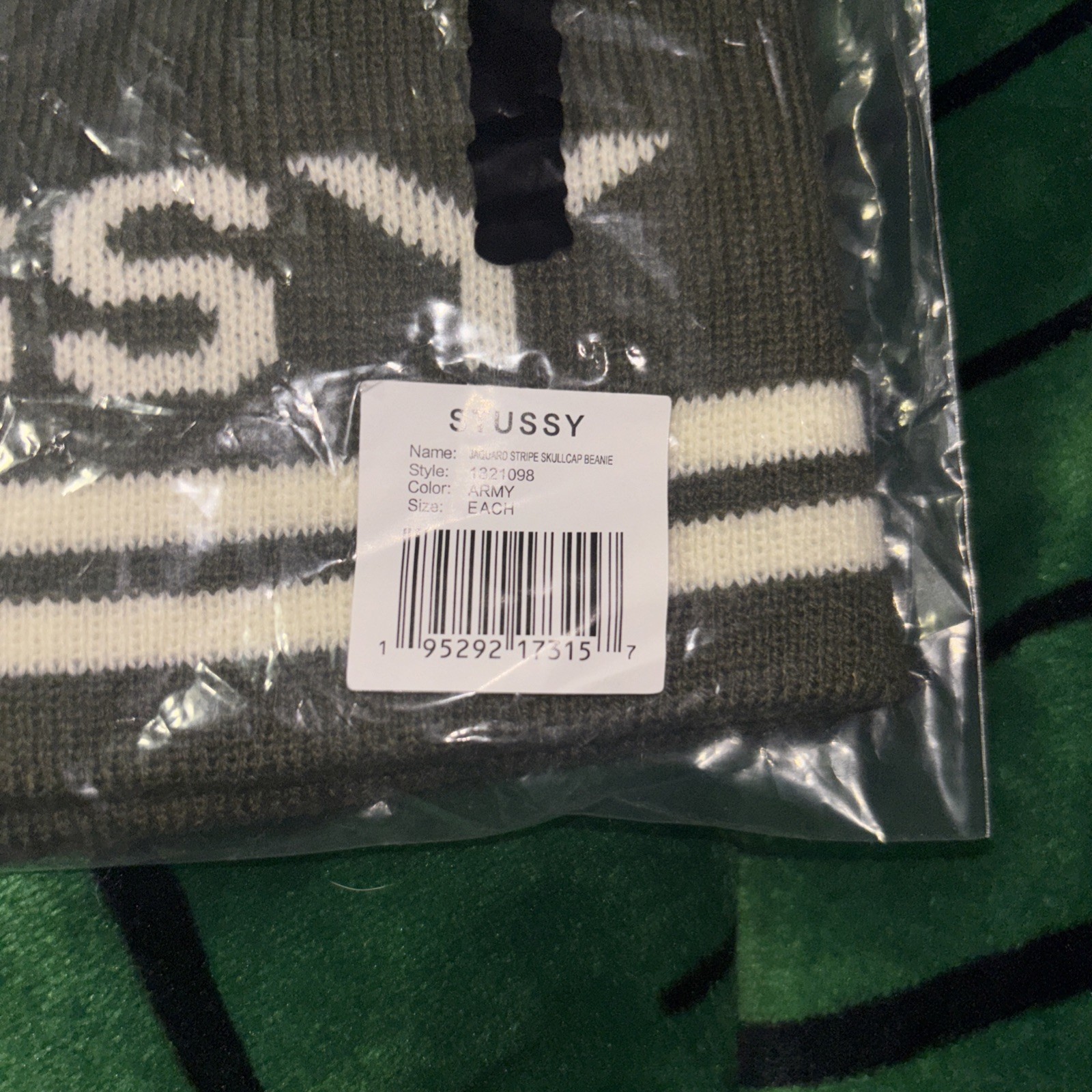 The Stussy Jacquard Stripe Skullcap Beanie Hat in Army Green is a stylish and versatile accessory for men. Made from acrylic knit fabric, this beanie features a striped pattern with a subtle skullcap design, perfect for casual occasions during the winter season. The adjustable size ensures a comfortable fit for anyone looking to add a touch of 90s-inspired style to their outfit. This authentic Stüssy hat is a must-have for men who appreciate quality and classic design.