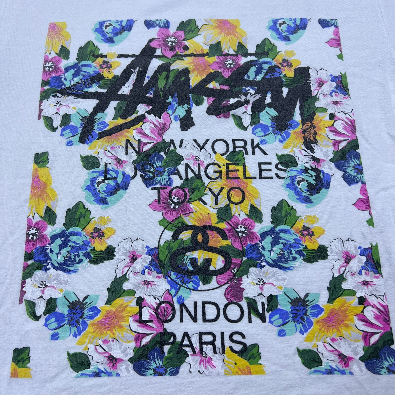 Love this Stussy streetwear shirt! The floral World Tour design is bold and stylish, though it has a few small spots (as shown in photos). Fits true to size—measure yourself first for the best fit. Great used condition overall, perfect for casual wear. Super happy with this unique find!