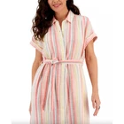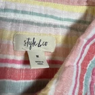 Style & Co. Striped Short Sleeve Shirtdress w/ Waist Tie Size Medium Colorful CONDITION: Pre-Owned. Excellent Used Condition. FLAWS/ALTERATIONS: No flaws. COLOR: White/Pink/Mint/Light Blue/Yellow SIZE: Women’s Size Small DETAILS: Collar Button up Waist tie Stripe Gauze fabric Knee length Woven, no stretch Short cuffed sleeves Shirt dress silhouette Unlined MEASUREMENTS: Chest: 22" Full Length: 42.5" **All measurements are approximate and are taken flat** MATERIAL: 100% Cotton Bundle 2 OR MORE items to save more! Reasonable offers are welcomed! TAGS: Casual Comfy Spring Summer Travel Vacation Maximalist Colorful Multicolor Rainbow Coastal Beach Breathable Sustainable Classic Staple