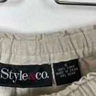Style & Co Women S Linen Capri Pants Embroidered Stretch Elastic Waist 2 Pockets. FEATURES: Flaws: None visible, pre-loved Good Condition, See Measurements Below Style Profile: Casual, comfortable, relaxed, lounge, beach, beige Approximate measurement Waist: 24" Rise: 11" Inseam: 21.5" 36-15-0021401222025