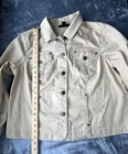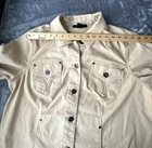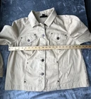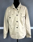 Style & Co Women's Tan Button Front Jacket with Pockets Please note the jacket is very slightly discolored near buttons on right side (please see pict) Please check measurement in photos as sizes vary Size: 16W Color: Tan Excellent Used Condition Fabric: 97% Cotton 3% Spandex Machine Wash Cold Comes from smoke free home