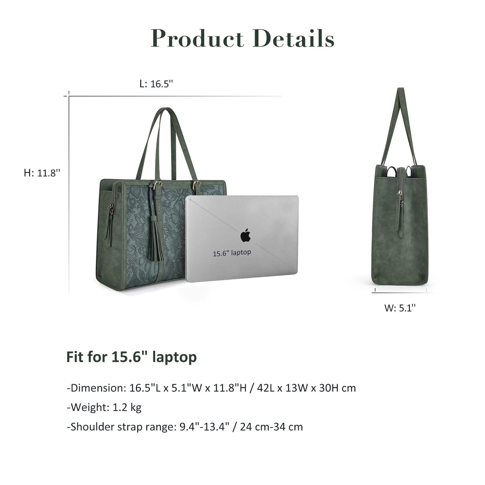 LARGE CAPACITY WITH 3 LAYERS: Three layers designed for different use to achieve maximum capacity.The independant padded pocket in the middle protects up to 15.6" laptop. The other two side compartments ideal for storing all of your essentials. WELL CONSTRUCTED: Magnetic buckle for a quick access, serveral inside pockets like ipad sleeves and zipped-fastening pockets keeping items well organized. CONVENIENT & STYLISH: Durable and adjustable handles drop range: 9.4"-13.4". Nice size admirably suits women and ideal for daily use like shopping/ meeting/ college/ working/ weekend travel/etc. MATERIAL & DIMENSION: Made of durable vegan leather material. High quality brass-tone hardware, wear-resisting, strong load-bearing. Dimensions: 42 x 13x 30 CM. WARRANTY: provides outstanding products and a wonderful buying experience. If you are not satisfied with our product or service for any reason, please reach out and we will attempt to resolve any issues and ensure your contentment.