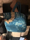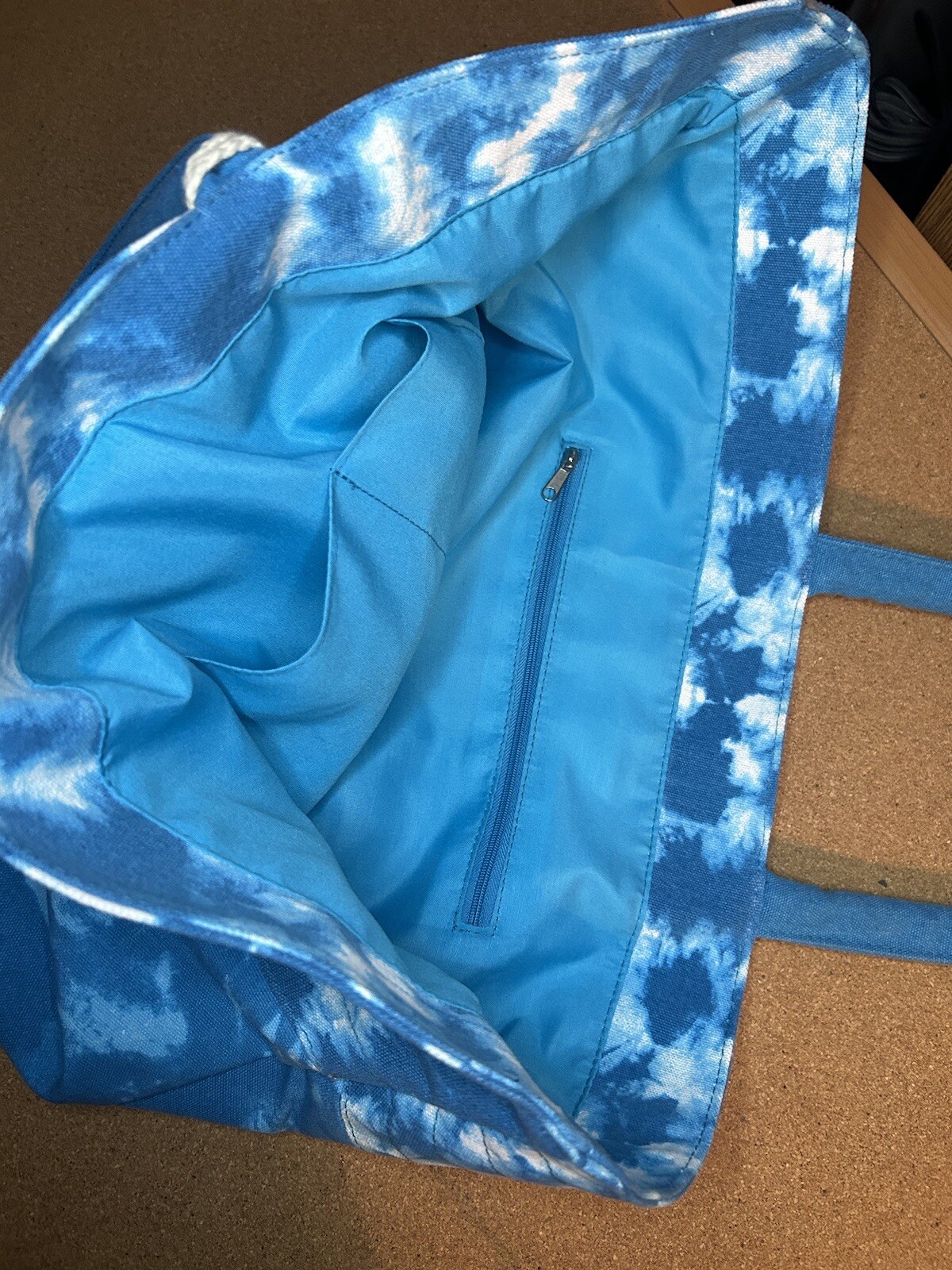 This beautiful blue tote bag is perfect for a day at the beach or any outdoor adventure. The bag features stylish tassels and is made of durable cotton material. It is roomy enough to carry all your essentials and has a comfortable shoulder strap for easy carrying. Whether you're heading to the beach or just running errands, this bag is a must-have.
