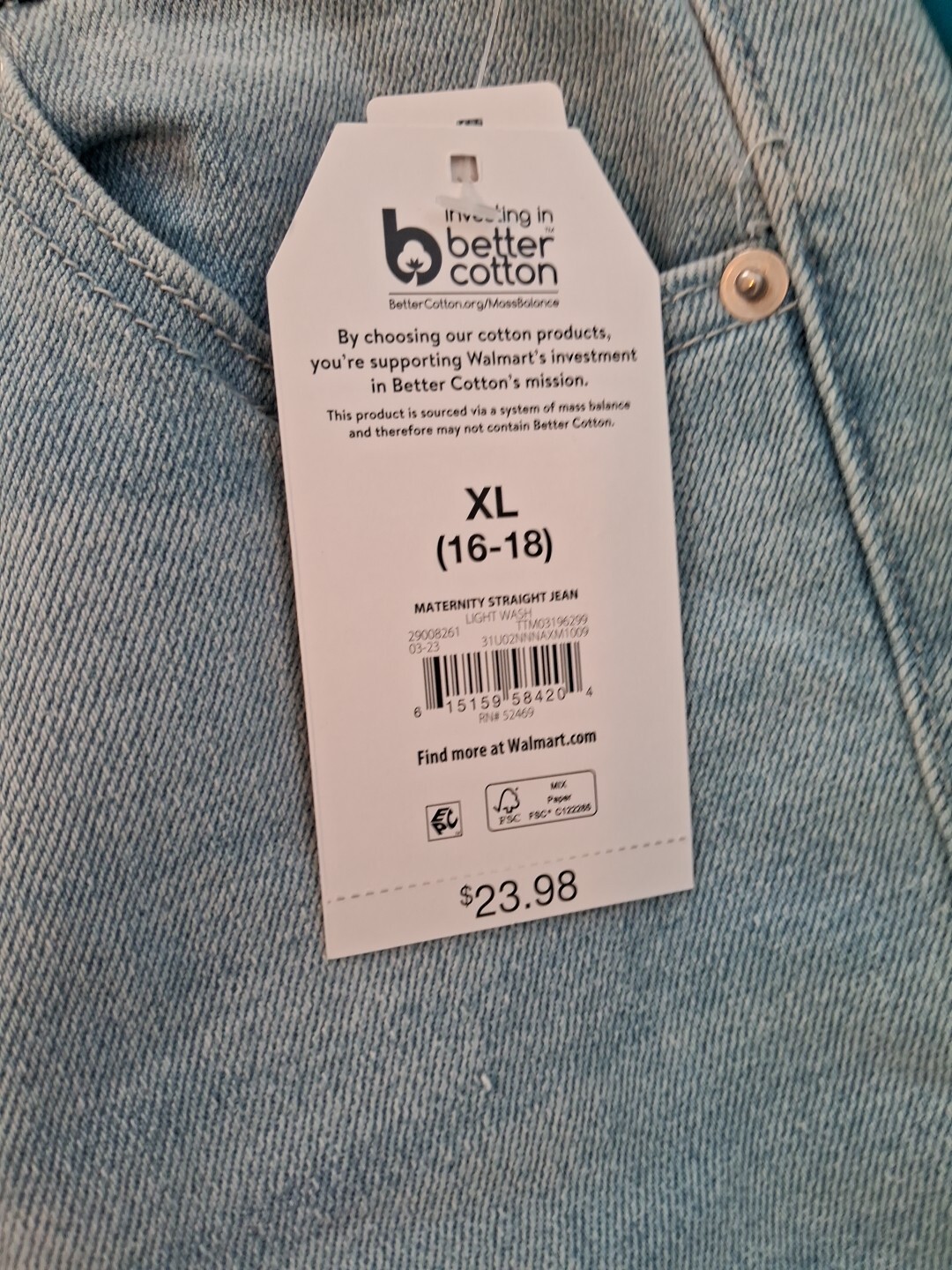 Maturnity jeans Size XL (16-18) Time and tru B9