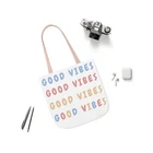 Lightweight, durable, and ideal for printing your artwork in picture-perfect quality—this polyester canvas tote bag does it all. The inside has a sleek, black lining and its comfortable straps come in five beautiful colors. Choose any (or all) of the three sizes—for quick errands, shopping trips, and longer travels. .: 100% Polyester canvas .: Available in 3 sizes .: Black interior .: 5 different strap color options .: All over print