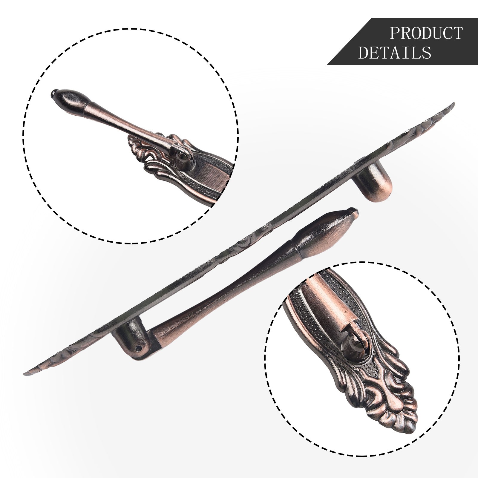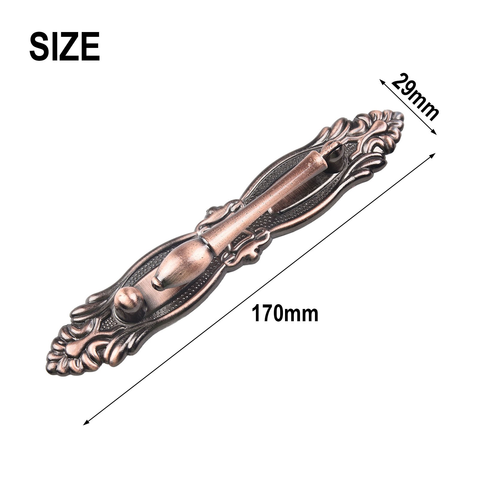 Stylish European Antique Zinc Alloy Door Handle Suitable for Cabinets Drawers DESCRIPTION Features: * This European antique exposed handle is designe d to be long-lasting and has a simple and elegant design. * The handle adopts brushed polishing and high-temperature sealing technology, which has good anti-rust effect. *Multifunctional Decoration: Suitable for furniture, cabinets, drawers, wardrobes, etc., this door handle is a great decoration for your home and office. * High-Quality Zinc Alloy: The handle is made of high-quality zinc alloy material, which is strong and long-lasting, a long service life. *Easy to install: No tools required, this handle can be easily installed and removed on doors or drawers. Specifications: *Product Name:Retro zinc alloy door handle *Material:Zinc Alloy *Size: 64mm: total length 112mm, width 19mm, hole spacing 64mm 96mm: total length 170, width 29mm, hole spacing 96mm *Color:red bronze, bronze Package Content: 1 x Door Handle Note: 1. The real color of the item may be slightly different from the pictures shown on website caused by many factors such as brightness of your monitor and light brightness. 2. Please allow slight manual measurement deviation for the data. POLICES Shipping Payment WARRANTY We only ship to confirmed ebay Order addresses. Please comfirm that your Order address is in line with your shipping address. Please kindly note that the c ombined shipping is not provided because the shipping fee is calculated by weight. Also, the each additional item means exactly the the same color and size. It takes about 7 -15 working days to US; about 10-30 working days to other countries. Transit time may be a little delayed because of the bad weather and customs inspection . If you do not receive your item within 30 working days since payment finished, please contact us immediately for further assistance. Payment must be completed within 5 days. If you have any problems about payment, please contact us via ebay message. We strive for 100% customer satisfaction! Positive Feedback is very important to us. If you have any questions, p lease feel free to contact us via "Ask seller a question" . We will reply your email within 24 working hours. On Oct 31, 2024 at 17:09:01 PDT, seller added the following information: