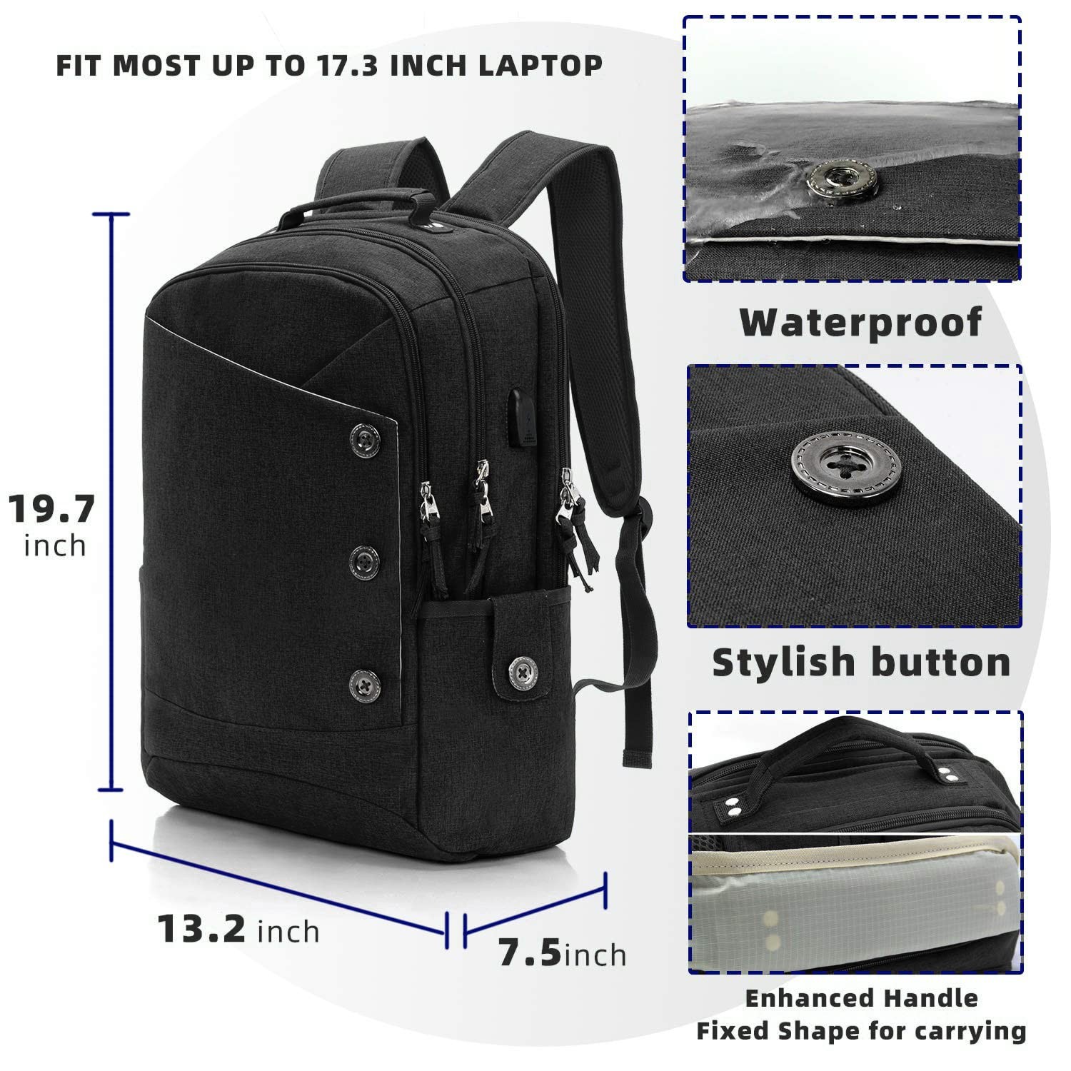 We have been professional in designing and producing the various kind of laptop sleeve case backpack for 17 years. Our factory is delicated to provide the customers stylish high quality product and service with reasonal and affordable cost. Dimensions & Multipurpose: Size, 17.9 x 12.5 x 7.1inch, the travel work backpack fit up most to 17 17.3 inch laptop computer, suitable for women men, work, travel, college adult, multipurpose daypack, casual daypack, learning, camping, hiking ect occasions, also can carry on flight, flight approved carry on bag, airline backpack ect. Well Made & Comfortable: The stylish 17 17.3 inch travel laptop backpack built in super upgrade polyester fabric, anti tearing & sratching & durable. The shoulder strap use thick breathable spondge than normal bag and the airflow backing system with extra padding provides maximum back support. Multi-Compartments & Bottle holder: The large capactiy women men backpack with separated laptop computer compartment, 2 big zipper compartment, 1 stylish convenient deep pocket. Except the laptop, you can also put all your work business shool necessaries, as well as 3-5 days clothes for travel work college daypack. The laptop backpack is with bottle holder, make your journey more convenient. Waterproof & Explosion-proof zipper: The laptop work backpack is waterproof, keep your valuable item safe from the occasional rain. The stylish explosion-proof zipper glid smoothly, zipper and unzipper easily. Anti theft design & Detachable USB Charging: A hidden anti theft pocket on the back protect your valuable items. A luggage strap allows the backpack fit on luggage or suitcase, slide over the trolley for easier carrying. The laptop backpack with USB Charging Port is convenient to charge. 【Dimensions & Multipurpose】 19.7 x 7.5 x 13.2 Inch, the travel backpacks fit up most to 17.3 inch laptop computer. Suitable for college backpack for men womens, professional business backpacks for laptop, international travel work, overnight camping commute backpack, Indoor/outdoor activities hiking back pack with the large capacity. 【Anti theft design & Detachable USB Charging】A hidden anti theft pocket on the back protect your valuable items. A luggage strap allows the backpack fit on luggage or suitcase, slide over the trolley for easier carrying, easy for a flight carry on trip and multipurpose dayback usage. The laptop backpack with USB Charging Port is convenient to charge. The cable is detachable, which is better for cleaning backpack and replacing the built-in cable. (Power Bank Not included) 【Durable & Comfortable】 The travel backpack built in super lightweight polyester & upgrade lining material, anti tearing & sratching & durable. The strap use thick breathable sponge than normal bag,the U shape airflow backing system with extra padding provides maximum back support, more comfortable & district the press more well. Comes with sturdy fashion handle & adopt the double & enhanced sewing technology, especially for every force position, make the backpack bear weight up to 22lb. 【Multi-Compartments & Bottle holder】The large capacity women men backpack with separated laptop computer compartment, 2 big zipper compartment, 1 stylish convenient deep pocket. Except the laptop, you can also put all your work business shool necessaries, such as daily cosmetic or important papers & samples etc, as well as 3-5 days clothes for business travel work. The backpacks are also with bottle holder, make your journey more convenient. 【Waterproof】The mens womens backpack is waterproof, keep your valuable item safe from the occasional rain. The stylish explosion-proof zipper grid smoothly, zipper and unzipper easily, not easy to be broken after using long time.we offer 12 month .If you have any questions, please kindly us through service.