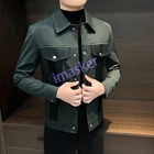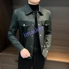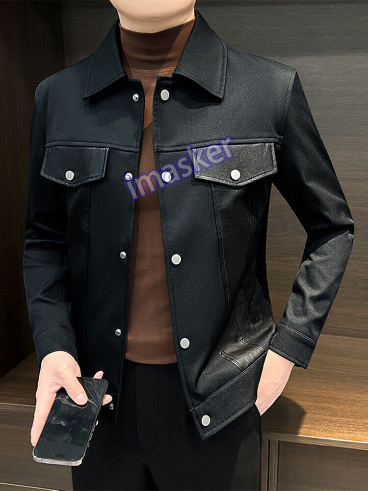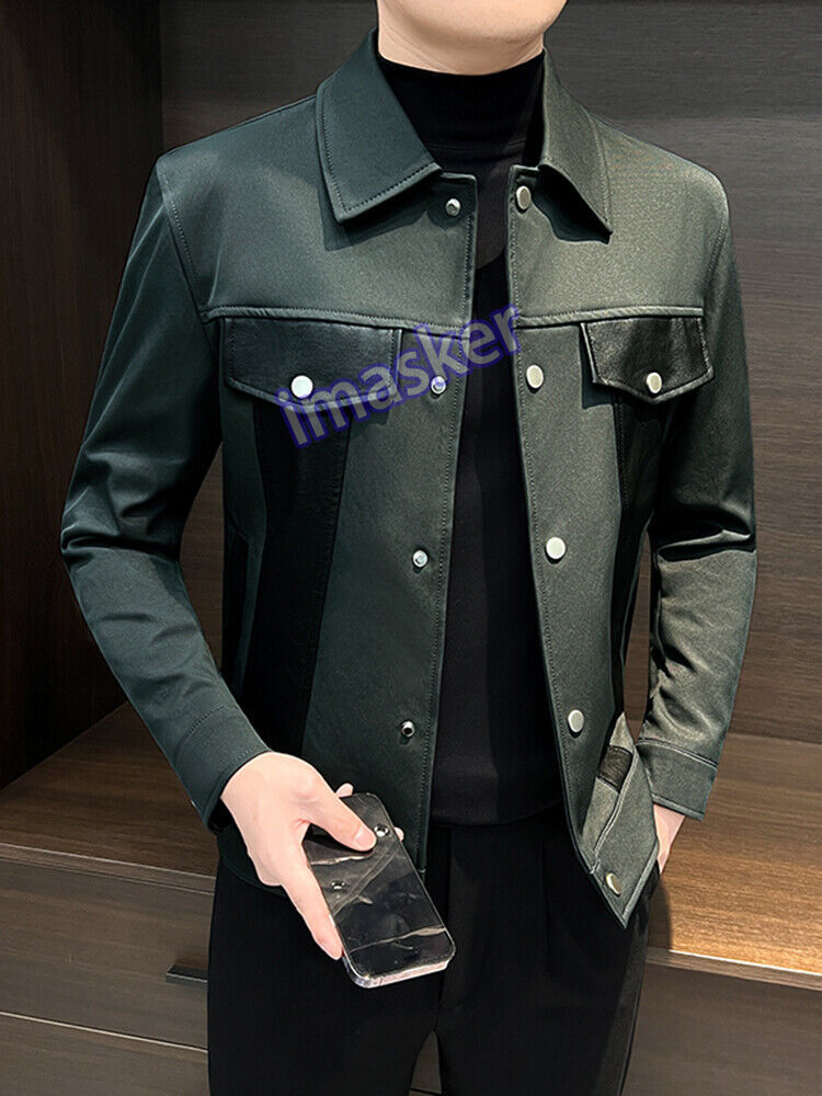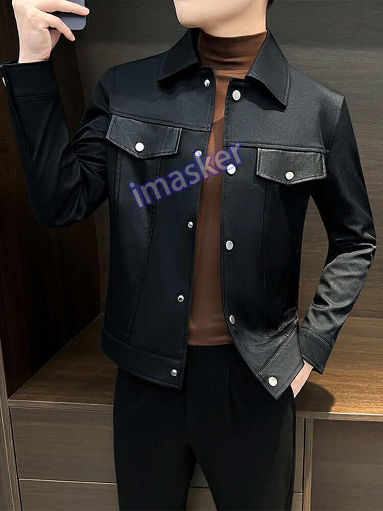 $ 39.6Men Slim Stand Collar PU Leather Jacket Casual Fashion Coat