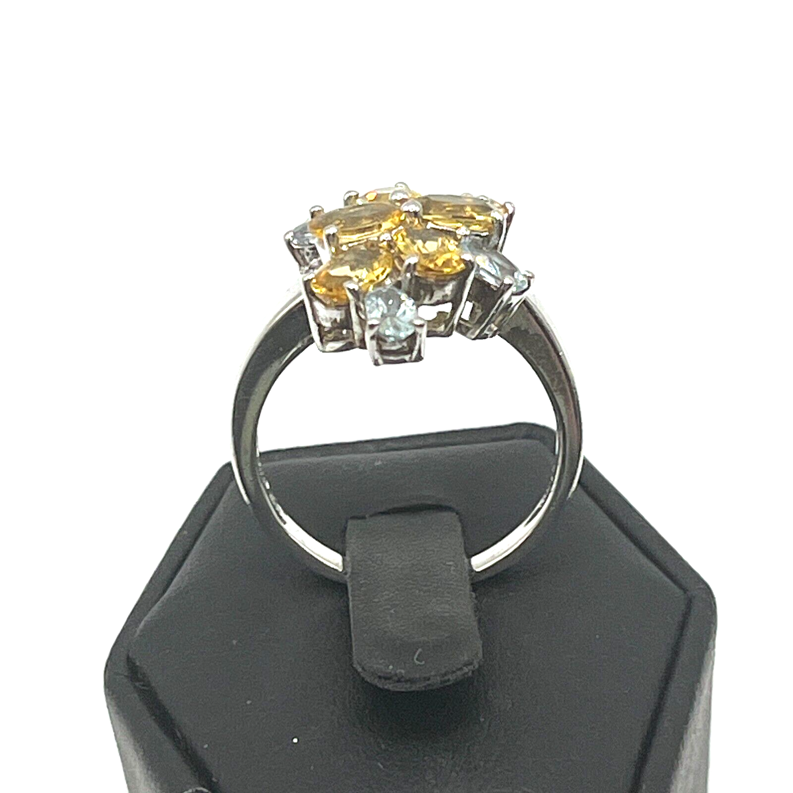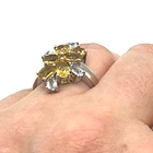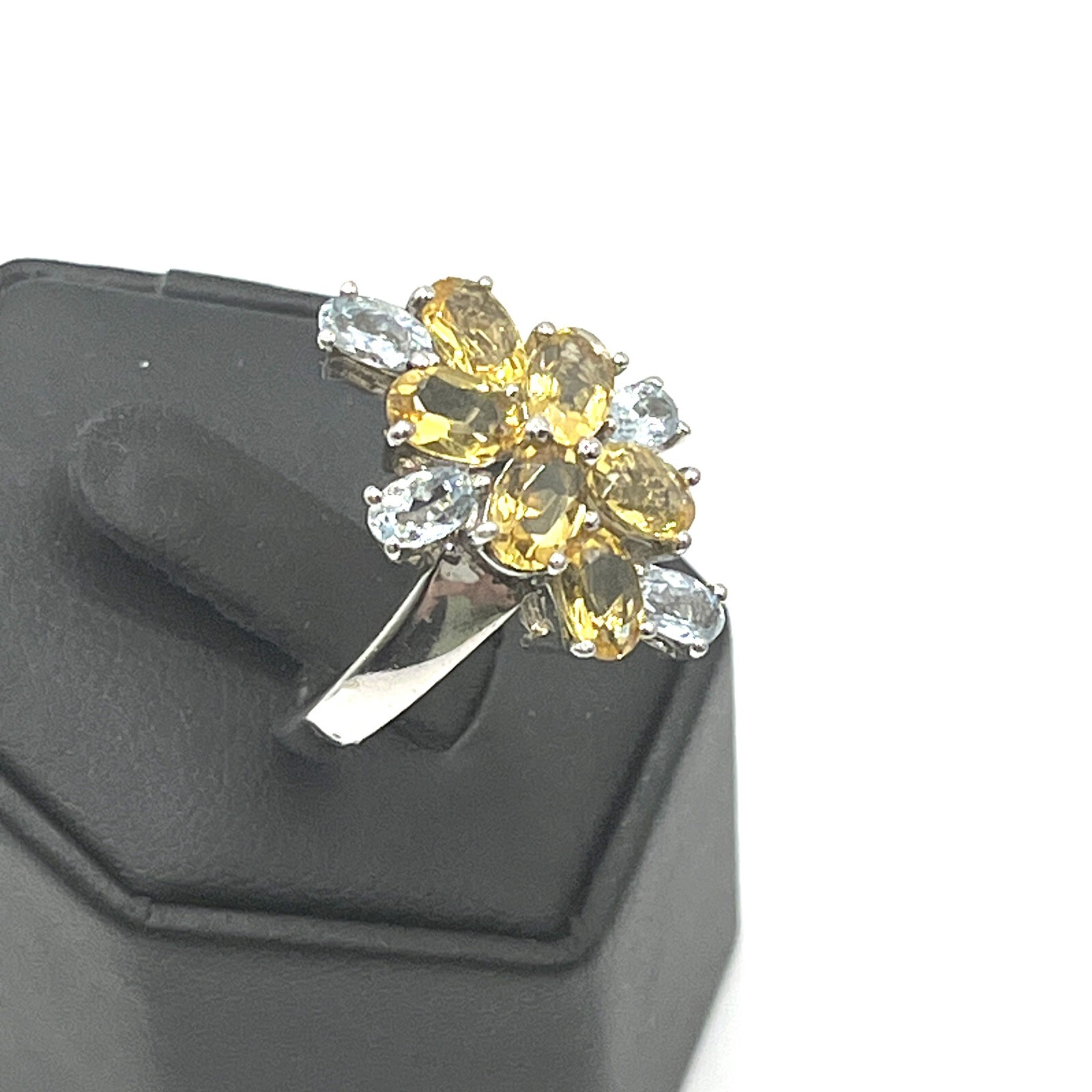 Cocktail Cluster Ring TOPAZ CITRINE Size 9 Sterling 925 Flower Signed Statement Measurements : Size 9 - 10 facetted stones! Condition: This ring is in excellent condition. Very minor patina or tarnish to the band. The stones are large and catch tons of light. They are securely set. Very nice vintage cluster ring. Please follow my store on eBay to receive coupons and sale information. I sell mostly vintage and designer women’s bags, clothes & accessories. Payment Payment will be handled through eBay. Most items will allow you to pay after committing to the sale. This gives us the ability to send an invoice for orders with multiple items with the shipping amount adjusted before payment. Please allow up to 24 hours to receive your invoice. If payment is not received within 3 days your order will be cancelled. Shipping We only ship to your eBay confirmed address. We cannot change the address after the sale is made. No exceptions. If this happens to you, you must cancel the order, fix your shipping address and purchase the item again. I will ship within 1 business day of cleared payment received. Combined Shipping is available when purchasing multiple items. The shipping will be recalculated based on the new weight and box size, and an invoice for the items with the adjusted shipping will be sent to you for payment within 24 hours. If you pay for multiple items in advance, just send us a message and we will do the calculations and refund you the difference in the combined shipping. International Buyers - Please Note: All of my international shipping is handled through eBay international shipping program. If you have questions about this, please contact eBay. Likewise, international returns are handled completely and solely through the eBay program, so questions will go directly to them. Terms of Sale All are items are guaranteed as described or your money back! We offer a 30-day return policy. About Us Stone Blue Creative jewelry & collectibles business is 5 years old. We carry designer, vintage, and estate jewelry along with other fine women’s accessories and art. We work hard to provide accurate representations of all of our jewelry and guarantee each item. We sell in all price ranges from $5 to around $3,000. All of our pieces are second hand unless marked New. Contact Us We can be reached through eBay messaging. Please allow up to 24 hours for a response, although response times are usually much faster.