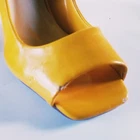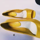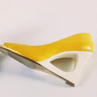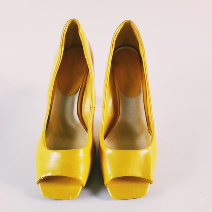 Delicious Yellow Peekaboo Women's Pumps Size 7.5 Shoes White Cutout Wedge Heel Good condition with minimal signs of wear; small nicks at toe area; have hardly been worn