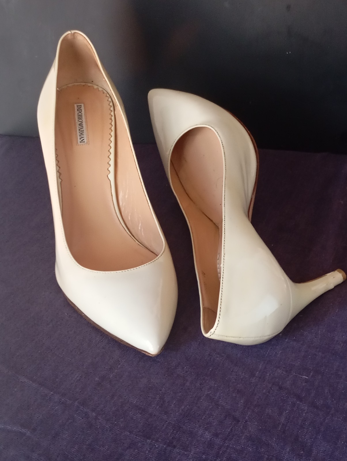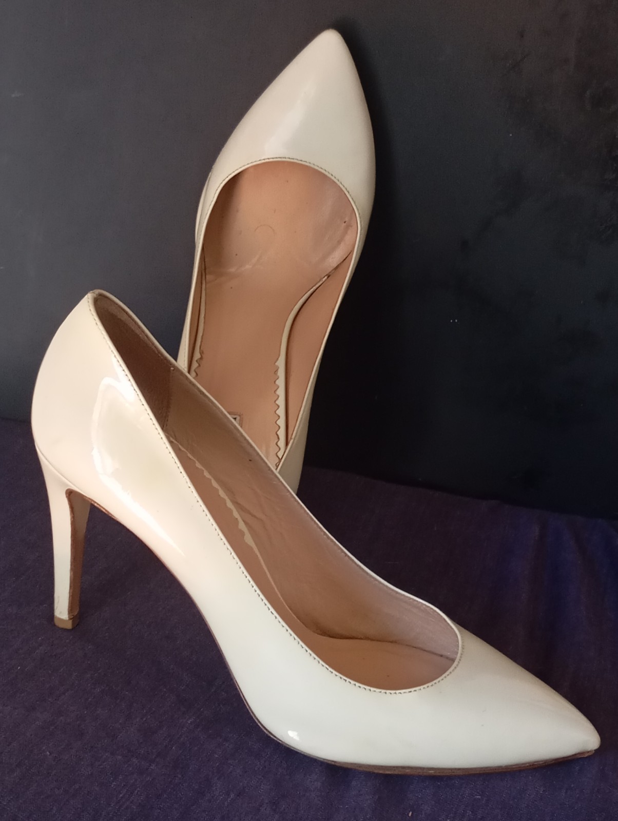 Stuart Weitzman Womens Heels Pumps 7.5 Beige Patent 2.5” Chic Pump NEW