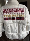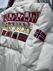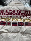 Excellent down jacket for a girl! Very high-quality stitching and classic cut! Cream-colored with original patches. Stylish zippers and a hood neatly integrated into the collar. The jacket is windproof and perfect for city wear or trips to the countryside during snowy seasons! The down is lightweight and comfortable to wear. A very stylish piece!