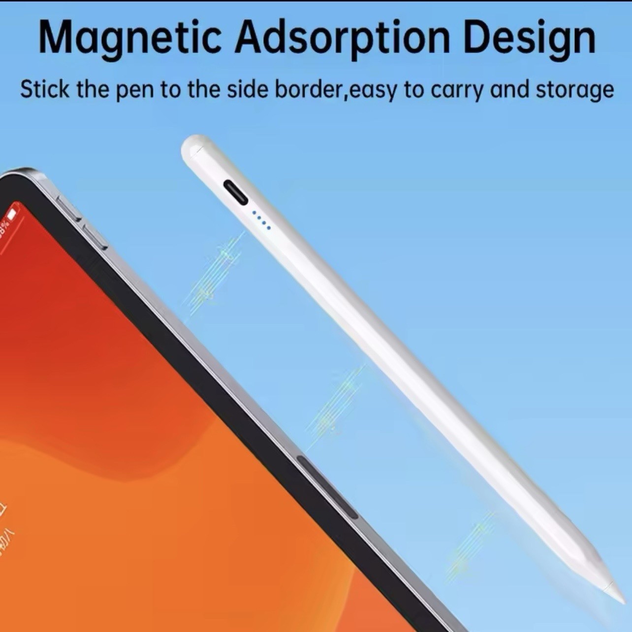 you cannot write or break the touch, you can adjust the tightness of the pen tip. It is not the original screen or the tempered film is too thick, which will affect it. This pen only supports capacitive screens • Universal Compatibility: This stylus pen is universally compatible, making it a perfect accessory for Android, IOS, iPad, Huawei, Xiaomi, and other touch screen devices. • Capacitive Screen Application :Designed for capacitive screens, this pen offers precise drawing and writing capabilities, enhancing your creative expression. • Magnetic Suction Feature :The stylus pen features a magnetic suction design, ensuring it remains securely attached to your device for convenient use. • Lightweight Design :Weighing less this stylus pen is lightweight and comfortable to hold, allowing for long hours of use without fatigue. • Durable Construction :Originating from Mainland China, this stylus pen is made with high-quality materials, guaranteeing durability and longevity. • Ideal for Tablets: Specifically designed for tablets, this stylus pen provides an optimal writing and drawing experience, making it a must-have accessory for your tablet. General purpose disconnection issue and precautions It needs to be tilted at an angle of more than 15 degrees and does not support vertical use. 2. Tablets and pens cannot be used while charging. 3. Suggest using thin films (some flat tempered films are too thick and affect sensing, while water-based films or paper like films are recommended for thin films. Magnetic paper films are not recommended for general-purpose pens as they may break the touch). 4. If the pen tip cannot be used, try replacing it with a spare pen tip. 5. Tablets or mobile devices do not support use while charging. Repairing or replacing the screen of a tablet or mobile phone may cause disconnection.