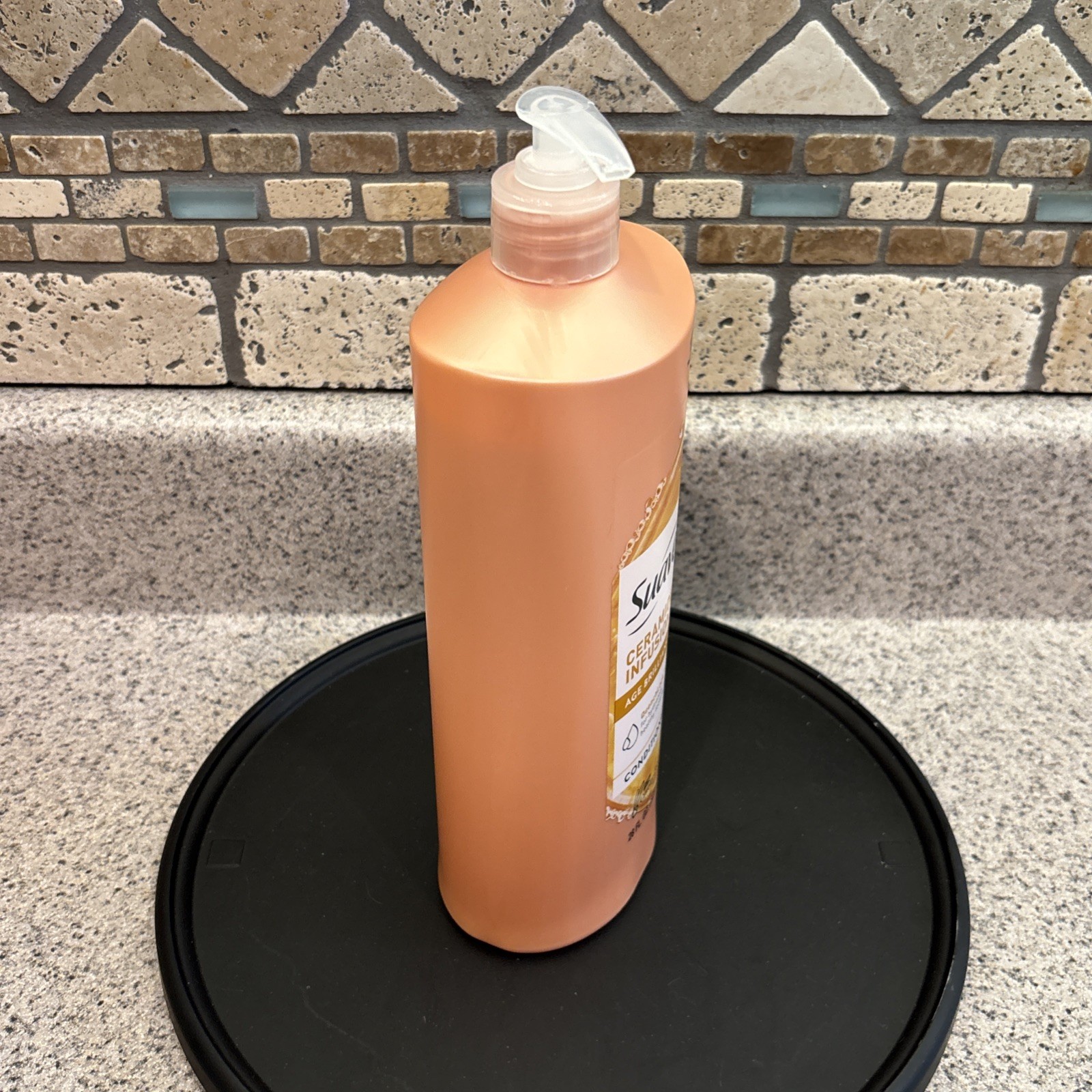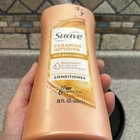 The Suave CERAMIDE INFUSION Conditioner AGE BRILLIANCE Quenchlock 28 oz is a hydrating and nourishing hair conditioner suitable for all hair types, including curly, coarse, dry, wavy, and damaged hair. It contains active ingredients such as Dimethicone and Ceramide to provide deep conditioning, shine, and moisturizing effects. This limited edition product from the Suave Ceramide Infusion line offers a luxurious and hypoallergenic formulation to help repair and smooth hair while being cruelty-free and free from formaldehyde. Made in the United States, this 28 fl oz conditioner is a rare find for those seeking a high-quality hair care product. See picture for detail