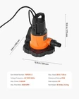 Features: Automatic Operation: Equipped with an automatic switch, this pool cover pump turns on and off based on the water level, no manual operation is needed. It activates when the water level rises above 2.09 in and stops when it drops below 0.35 in. Simply tilt the pump and submerge it in water for a few seconds to expel air before use (Avoid lifting the pump by the power cord to avoid permanent damage) Efficient Water Drainage: Powered by a high-speed 3,450 RPM copper motor, this automatic pool cover pump delivers 0.66 HP of robust power, draining up to 3,200 GPH. Max. Head: 26 ft / 7.93 m. Say goodbye to manual water drainage and let this pump quickly clear your pool cover, keeping it dry of water Security Comes First: Featuring a built-in overheat protection, this submersible pool cover pump automatically shuts off when the motor reaches the preset temperature of 302°F. This security feature minimizes the risk of damage and extends your pump's service life Waterproof & Clog-Resistant: With an outstanding IPX8 waterproof rating, this swimming pool cover pump operates reliably even when fully submerged in water. The filter base efficiently traps leaves, dirt, and debris, minimizing the risk of clogs and keeping the pump from tipping over Everything You Need: This pool cover pump comes with a NPT 1" thread & 1.25" barb adapter and a 1-inch NPT to 3/4-inch GHT elbow adapter. The built-in check valve avoids backflow. Additionally, a 33-foot nylon rope is included for easy handling and secure pump placement. 0.66 HP Automatic Pool Cover Pump, Hands-Free Water Drainage Our pool cover pump features a copper motor with 3,450 RPM high speed, providing fast water drainage. It has a 3,200 GPH flow rate, 26 ft head lift, IPX8 waterproof rating, overheat protection, and 25 ft power cord, giving you peace of mind. No need for constant monitoring or manual adjustments. The built-in filter at the bottom of the pool cover pump effectively reduces debris and impurities, protecting the pump from damage. It enhances performance and extends service life, reducing maintenance costs while ensuring long-lasting operation. With the included durable nylon rope, you can easily secure the submersible pool cover pump in place along the poolside or any suitable location, keeping it from shifting due to water flow or wind. It provides enhanced stability and security during operation. Equipped with a 25-foot power cord, this swimming pool cover pump plugs into any standard 115V outlet. The long cord reduces the need for extension cables, minimizing the potential risks associated with electrical connections. Thanks to its portability and high efficiency, this pool cover pump is ideal for a variety of scenarios. Whether it's for your pool, pool cover, hot tub, or inflatable water park, this pump makes water drainage quick and hassle-free in any setting.