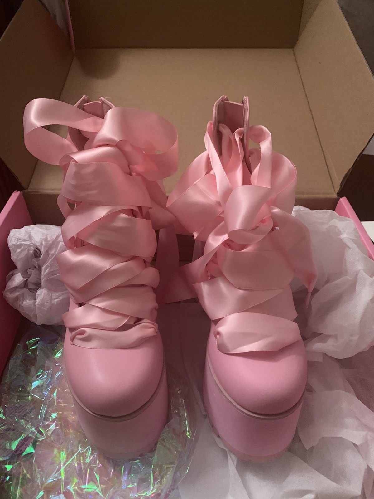 The Sugar Thrillz Dolls Kill Pink Ballet Platform Heels in size 7 are the perfect choice for any party or cocktail event. These stylish heels by Dolls Kill feature a platform style with a pink synthetic upper material, making them both trendy and eye-catching. Designed for women, these heels are versatile for both summer and spring occasions, adding a chic touch to any outfit. Perfect for those looking to make a statement with their footwear while staying comfortable and on-trend.