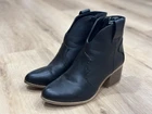 Step out in style with these Sugar Comet ankle booties in black. Made from faux leather, these boots feature a comfortable cushioned insole and a mid-height block heel, perfect for any occasion - from casual outings to parties or even travel. The almond toe shape and zip closure add to the overall sleek design, while the equestrian and 70s themes provide a touch of personality. These boots are available in size 9M and are a regular fit for calf width. The synthetic outsole and lining material make them durable and long-lasting. Add these Sugar Comet booties to your wardrobe for a versatile and fashionable touch.