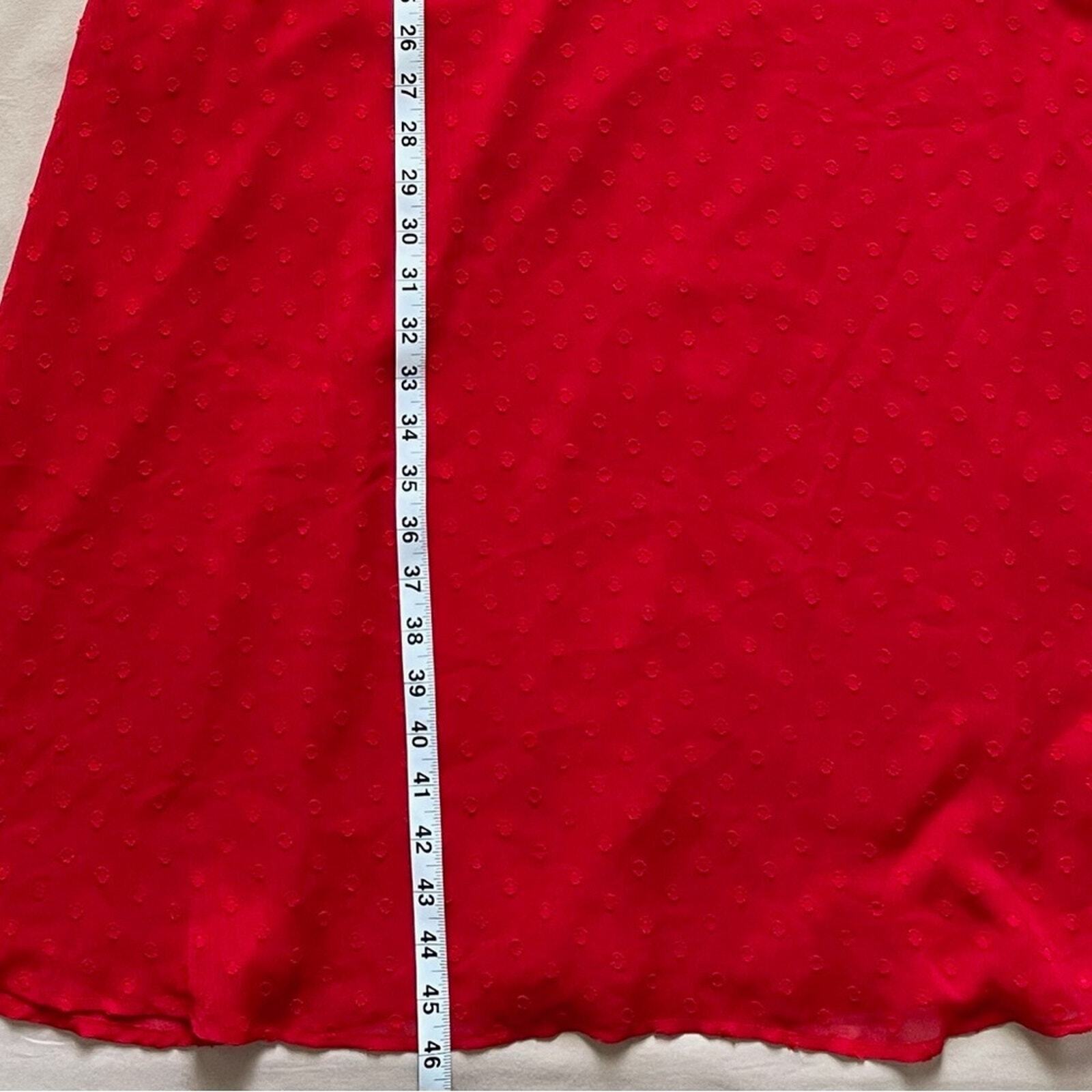 Sugarlips Kismet Chiffon Swiss Dot One Shoulder Dress in Red Size Large Used, excellent condition. Fabric on the shoulder could be left to hang or tied. Side zipper closure. Fully lined with chiffon overlay. Lightweight flowy fabric. Approximate measurements shown in photos.