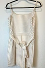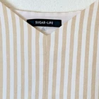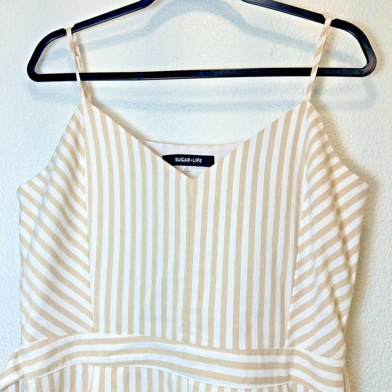 NOTE: STOCK PHOTOS ARE JUST TO SHOW YOU THE STYLE, COLOR ON THIS ITEAM IS WHITE AND BEIGE (CREAM) Elevate your wardrobe with this stunning Sugarlips romper! The striped pattern in tan and white, along with the V-neckline and adjustable straps, makes this piece perfect for any occasion, whether it be a casual day out or a party. The bow accents and belted waist add a touch of elegance to this one-piece romper, which is made of polyester and spandex for comfort and easy machine washability. This romper is perfect for juniors’ sizes and comes in a size L with a approximately 2-inch inseam. It is lined for added comfort and has a Invisible side zipper for easy wear. Whether you’re dressing up or down, this romper is a must-have for any fashion-forward woman. Approximate measurements Length: 30” (adjustable straps) Armpit: 20” Waist: 16” Rise: 13” Inseam: 2” STYLE:P2416ADR SELF:60%COTTON 35%POLYESTER 5%SPANDEX LINING: 96% POLYESTER 4%SPANDEX RN# 113853 RP$59 From free smoke home C6-1018-5
