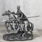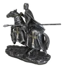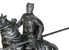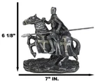 • This Medieval Crusader Knight On Heavy Cavalry Horse Figurine measures 6.25" tall, 7" wide and 3" deep approximately. It weighs about 1.5 pounds. • This Medieval Crusader Knight On Heavy Cavalry Horse Figurine is made of high quality designer resin. It is individually hand painted and polished. Because each piece is partially hand crafted, color tone may vary from pictures. • Step back in time to the age of knights and chivalry with our impressive statue featuring a Crusader Knight in a Suit of Armor, armed with a javelin spear and mounted on a powerful heavy cavalry horse. This meticulously crafted piece captures the dynamic energy of a medieval tournament, showcasing the strength and valor of the knight as they ride into battle.