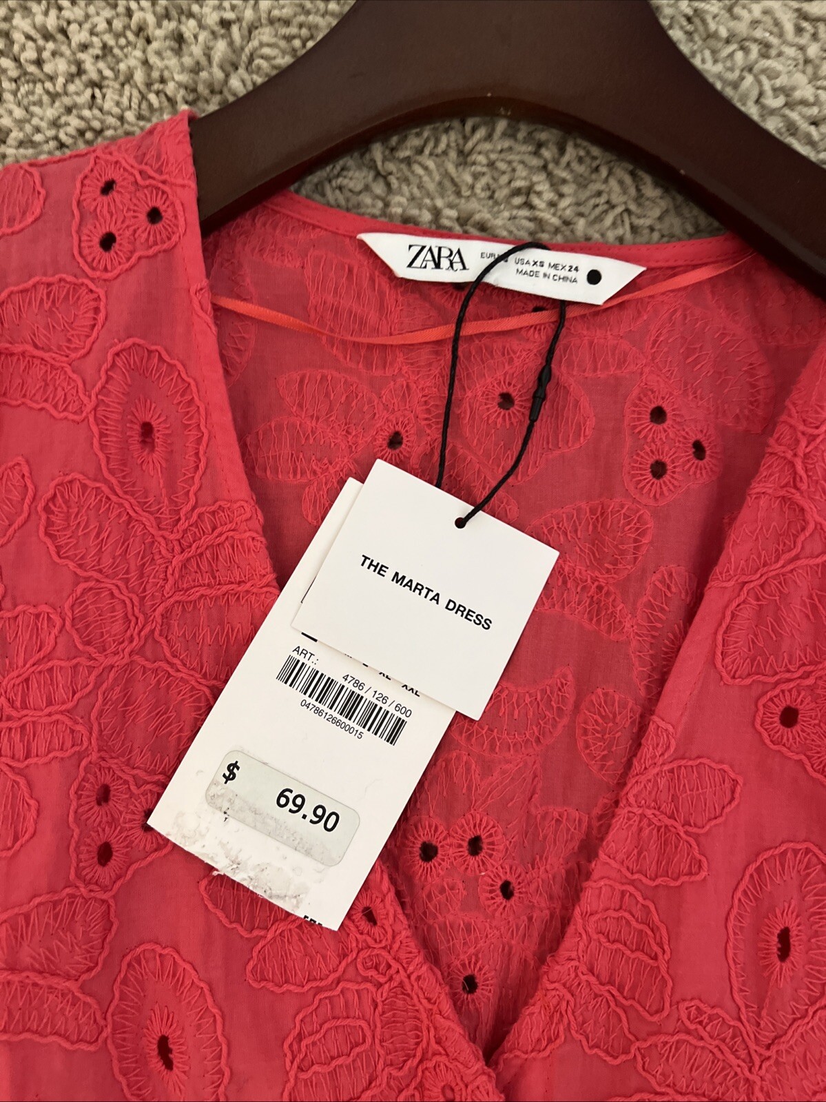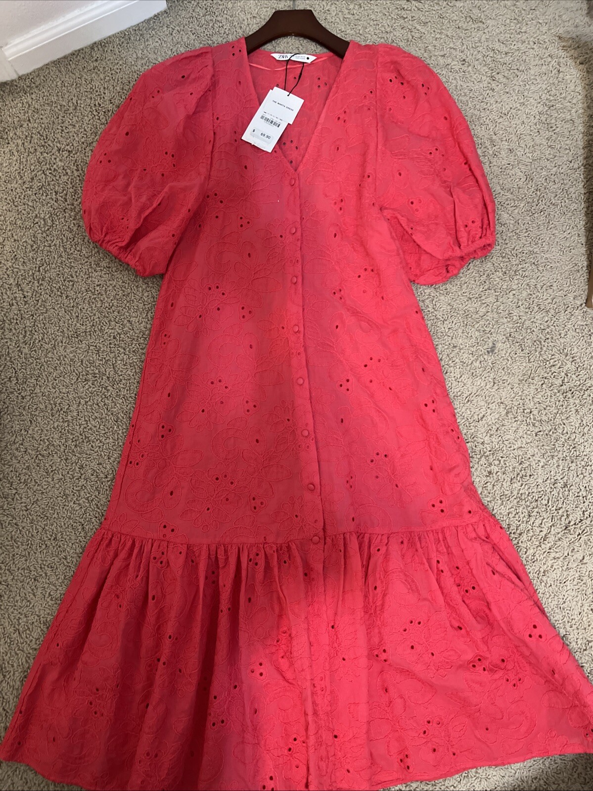 Eyelet summer dress/ Zara/size XS/ salmon