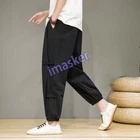 Summer Chinese Style Mens Cotton Linen Loose Trousers Pantskirt Japanese Pants