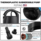 EFFICIENT DRAINAGE: Utility pump with 1HP power motor for Draining water up to 4600 GPH( 76 GPM) at 5ft. Lift water up to 31ft of vertical height. Removing water to 1/5" of the surface. PORTABLE PUMP: Plug in to play while unplug to stop. Sump pump filters debris and removes water down to 1/5 inch from the surface. Handle up to 1/5″solids , ideal for pool pond draining hot tub and flooded basement window wells 4 DETAILS: 25FT power cord for greater range of use;Removable bottom easy to clean and maintain pump life; Rounded handle prevents cuts and comfortable to use;Thermoplastic housing for corrosion resistant and durable. QUICK TO CONNECT: Comes with a NPT 1-1/2" discharge size, a NPT 3/4" garden hose adapter and a hose adapter fits Ф1-1/2", Ф1" or NPT 1" inch hose. You can use different sizes of hoses depending on the flow ENERGY SAVING & SAFETY: Follows UL 778&746C standards for safety and 100% manufacturer tested, low noise and energy saving. Built-in automatic thermal overload protects the motor from burning out when dry running -AFTER SERVICE: Comes with 3-year after-sale service, Any inquiries or problems please feel free to our service team, there will be help for any concerns within 24 hours TIPS: Before using the pump, please submerge the pump into the water at an angle to allow any trapped air to escape MANUAL MODE ONLY: Please note that this is a public manual pump and does not support automatic start/stop.