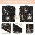 Sun and Moon Rfid Women Wallet, Small Slim Thin Credit Card Wallet, PU Leather Bifold Cash Wallet, Zipper Coin Pocket & ID Window, Female Ladies Teen Girls Girly Wallet Large Capacity: The slim women wallet offers 8 RFID blocking credit card slots, 1 clear ID window, 1 cash compartment, and 1 side zipper coin pocket; The exterior of the leather credit card holder also features two card slots for easy access to your frequently used cards; It's large enough to hold all your essentials and outdoor gear Unique Design: The small card wallet features a stylish pattern with sun and moon, showcasing your personality and adding a touch of fashion to any outfit; It comes with a front buckle and a zipper pocket, providing convenient and secure storage; Its compact design makes it easy to slip into front pockets, backpacks, and crossbody bags Multifunctional Wallet: This cash wallet is made of PU leather, offering a comfortable touch; The thin bifold wallet design with button buckle and zipper pocket keeps your cards, cash, coins and keys neatly organized and secure; Additionally, this coin purse comes with a metal keychain that allows you to manage your keys and even hang it in your bag to free up your hands RFID Blocking Technology: The RFID wallet for women is equipped with advanced RFID blocking technology; With a protective layer, this keychain wallet can effectively block RFID chip signals, preventing illegal scanning by RFID scanners and readers; Keep your important information safe from electronic theft and enjoy peace of mind wherever you go For Loved Ones: The super vibrant patterns on the ladies wallet with zipper will undoubtedly showcase your personality, making it a good choice for any occasion like Valentine's Day, Thanksgiving, Mother's Day, New Year, Christmas, birthdays, anniversaries, weddings, and more; Surprise your girlfriend, daughter, friend, lover, or family members with this awesome and unique wallet